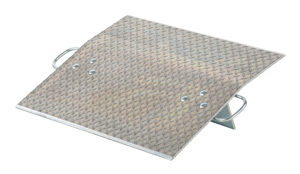 Aluminum Hand Truck Dock Plate 30 In. x 24 In. 700 Lb. Capacity SilverThis Aluminum Hand Truck dock plate is designed for use with two (2) wheel hand trucks. It is a convenient, safe, and easy way to access loading docks from trucks. This dock plate is lightweight and easily transported by just one person. The tread plate surface ensures skid-resistant safe traction and the locking legs secure the plate for safe loading and unloading. Complete with bolt-on zinc plated carrying handles and locking legs.