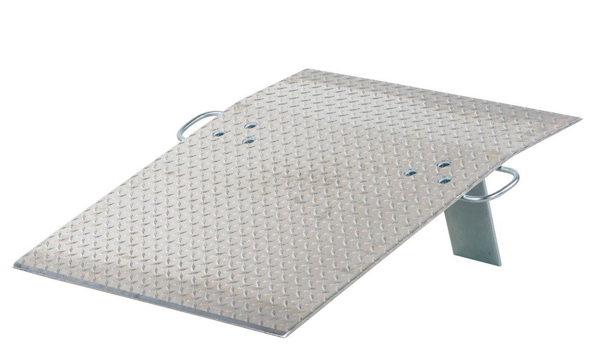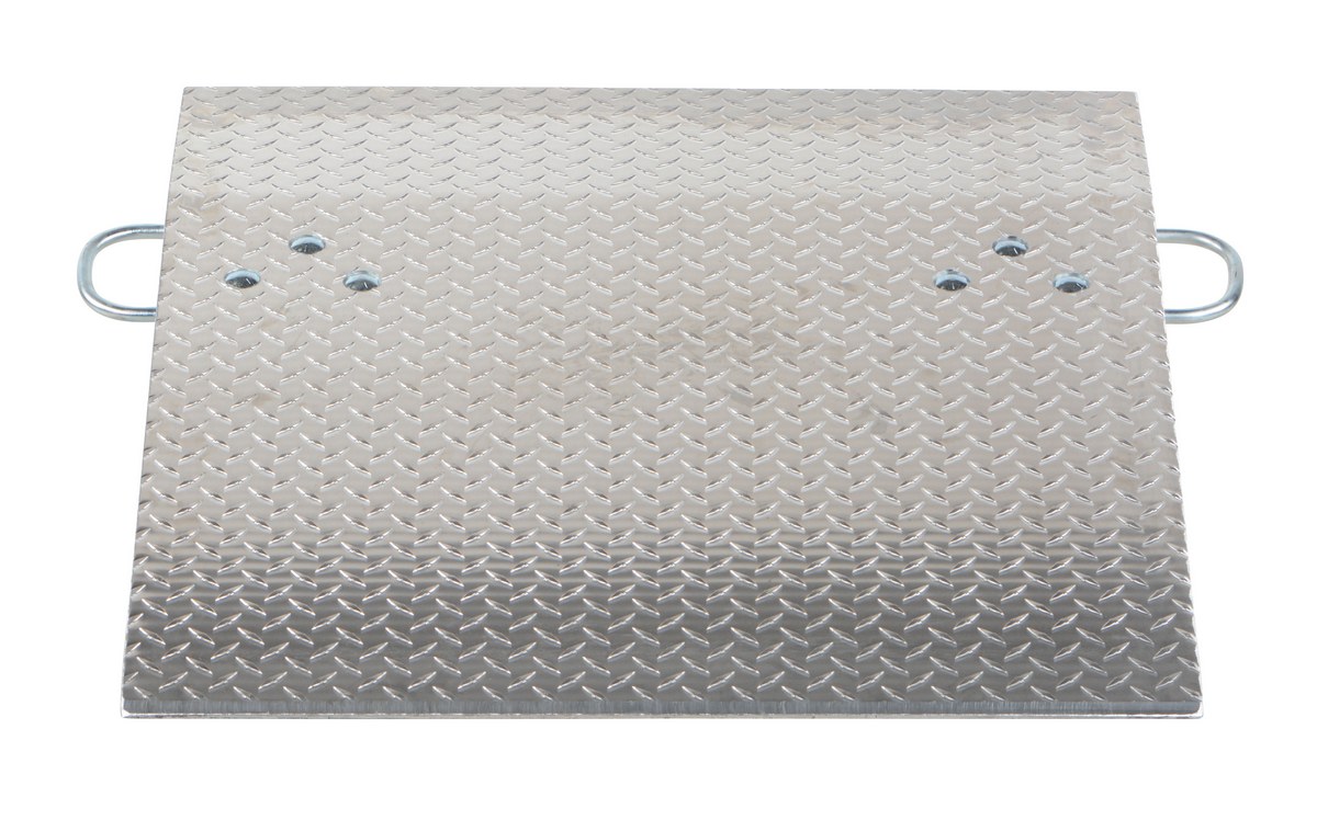 Aluminum Hand Truck Dock Plate 30 In. x 36 In. 700 Lb. Capacity SilverThis Aluminum Hand Truck dock plate is designed for use with two (2) wheel hand trucks. It is a convenient, safe, and easy way to access loading docks from trucks. This dock plate is lightweight and easily transported by just one person. The tread plate surface ensures skid-resistant safe traction and the locking legs secure the plate for safe loading and unloading. Complete with bolt-on zinc plated carrying handles and locking legs.