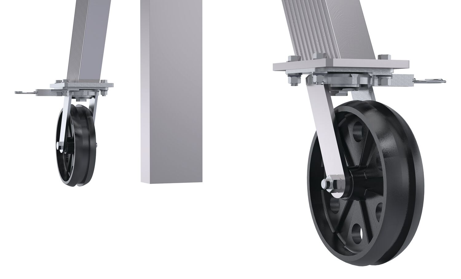 The adjustable height Aluminum Gantry crane combines lightweight and rigid, sturdy construction into one unit. The all aluminum construction of this gantry crane makes it corrosion resistant and perfect for outdoor use. The lightweight I-beam allows simple height adjustments. All pinned connections make it possible for single person set up and take down in just minutes. Included are two straps, allowing one person to transport the gantry crane in one neat package. Unit comes standard four (4) V-groove casters, allowing for quick movement and positioning adjustments.