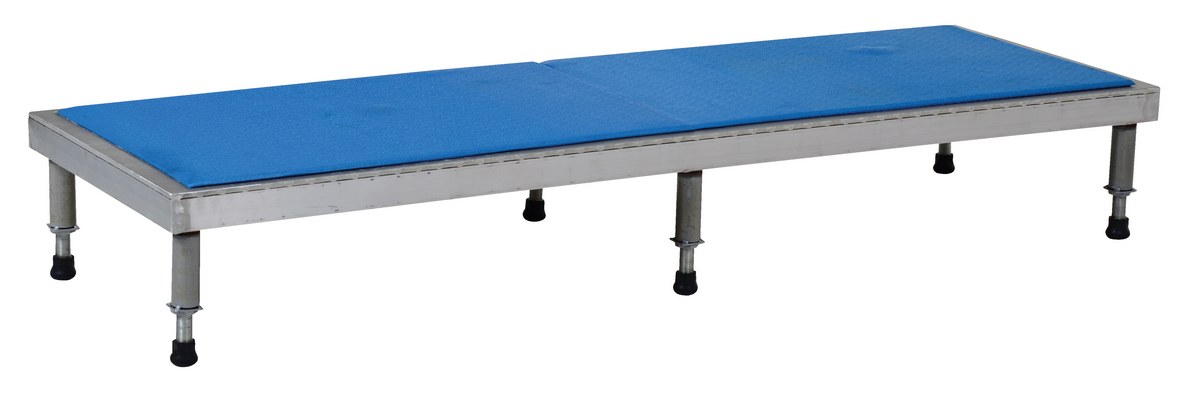 Aluminum Adjustable Work-Mate Stand 72 In. x 24 In. x 9-1/2 In. 500 Lb. Capacity SilverThe adjustable work-mate stand minimizes fatigue by elevating workers to heights that are comfortable and ergonomically correct. Especially useful when multiple shift employees operate the same piece of machinery. The ergonomic matting deck style provides comfort for the operator who stands all day. The height of each leg can be adjusted individually to ensure proper working height.