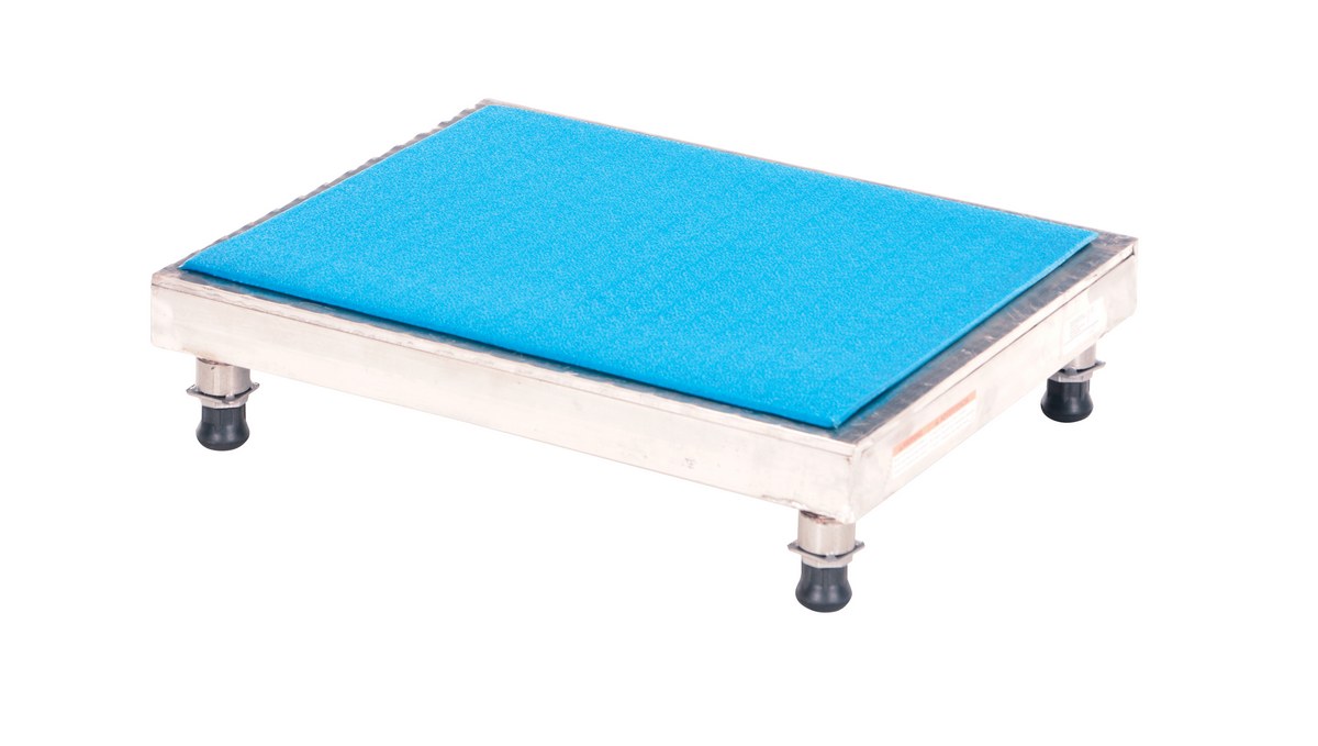 The adjustable work-mate stand minimizes fatigue by elevating workers to heights that are comfortable and ergonomically correct. Especially useful when multiple shift employees operate the same piece of machinery. The ergonomic matting deck style provides comfort for the operator who stands all day. The height of each leg can be adjusted individually to ensure proper working height.