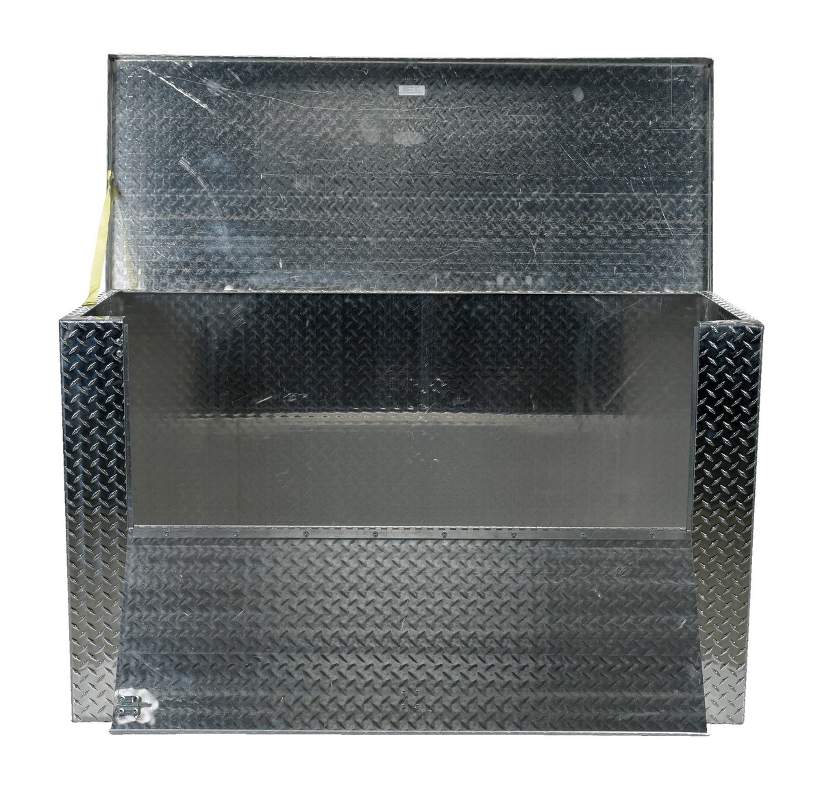 Aluminum Portable Tool Box with Fold Down Front Door 25-7/8 In. x 61-1/4 In. x 37-1/16 In. 2500 Lb. Capacity SilverThe Aluminum portable toolbox is excellent for storing and transporting equipment. The heavy duty welded aluminum tread plate construction is designed to tolerate the toughest of environments. Additional features also include ergonomically friendly carrying handles on each end for smooth manual transporting and a hinged lid which includes a lockable double hinged hasp for added security.