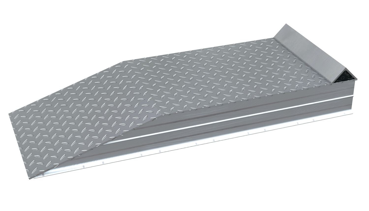Aluminum Tread Plate Wheel Riser with Roll Off Guard 72 In. x 24 In. x 12-1/16 In. 30000 Lb. Capacity SilverA standard wheel riser is a great asset to have available when working in the shipping and receiving industries. But, this wheel riser is more than standard. With an aluminum construction, this unit includes a roll off edge guard that acts as a stop point. This allows the user to safely mount the wheel riser without the fear of going too far. The raised tread surface gives added traction throughout the ascending and descending action.
