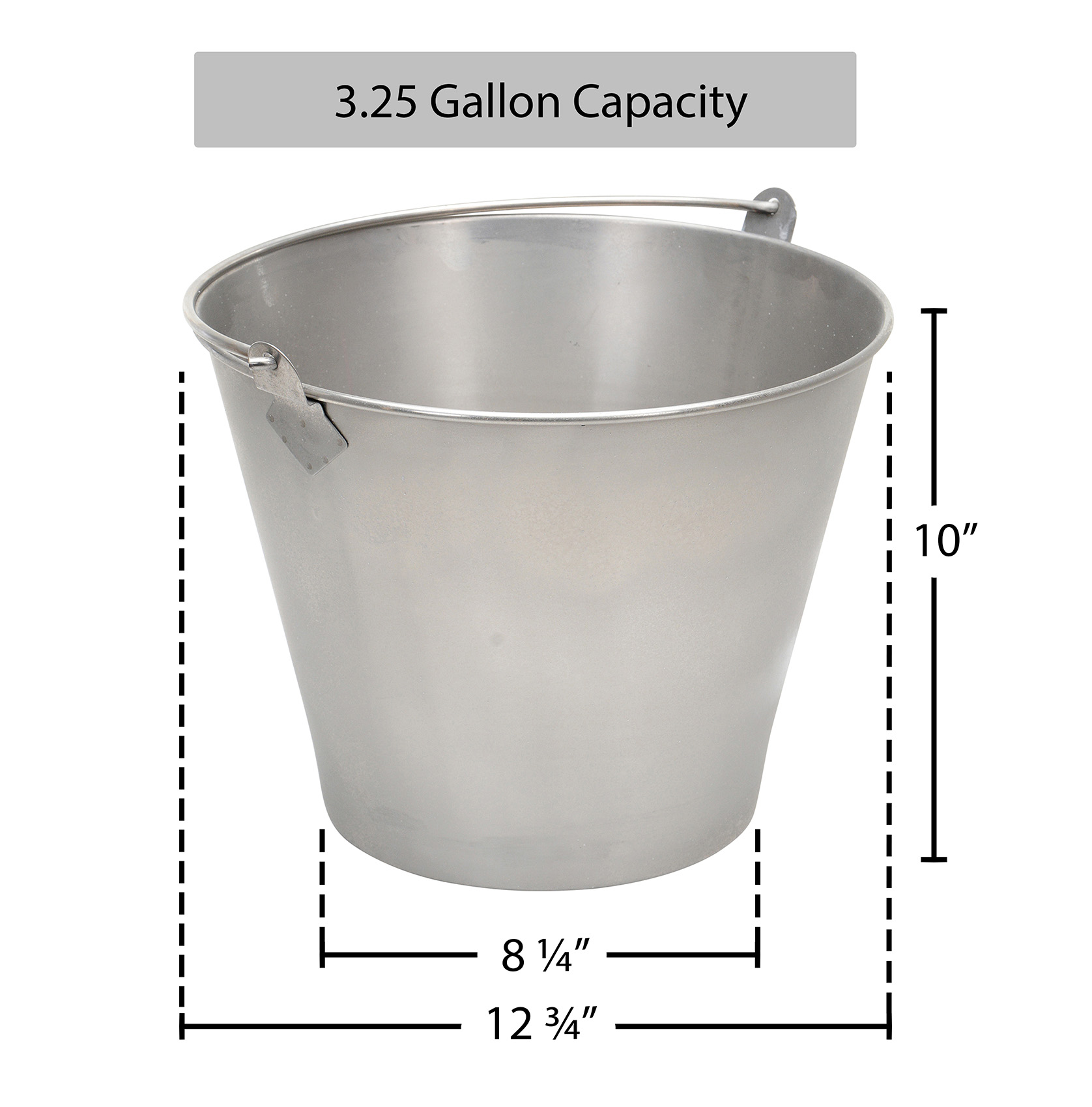 Stainless Steel Bucket 3-1/4 Gallon CapacityThe Stainless Steel bucket is for use in industrial and commercial applications where durability is required. Buckets are nestable and come standard with a carrying handle/bail for easy transport. Constructed of stainless steel.