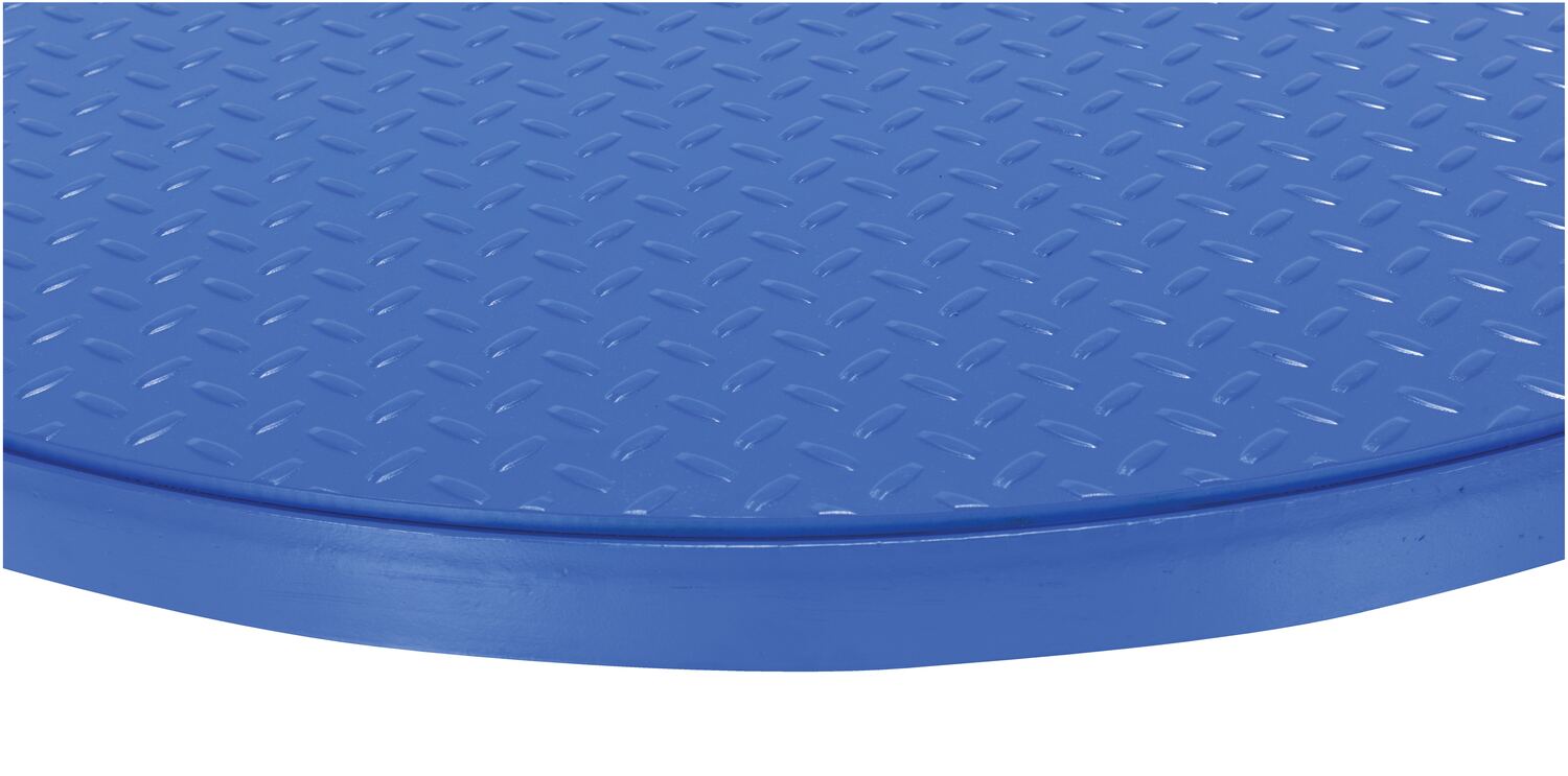 Steel 36 In. Carousel, 2K Capacity, Round Tread Top Plate BlueThis manual carousel rotates material with the assistance of an operator. Now, loading and unloading operations can be done more efficiently minimizing fatigue and risk of back injury. The carousel may be added to an existing work bench, scissor table, or simply placed on the floor. A steel constructed top plate is included with the carousel for enhanced stability during use.