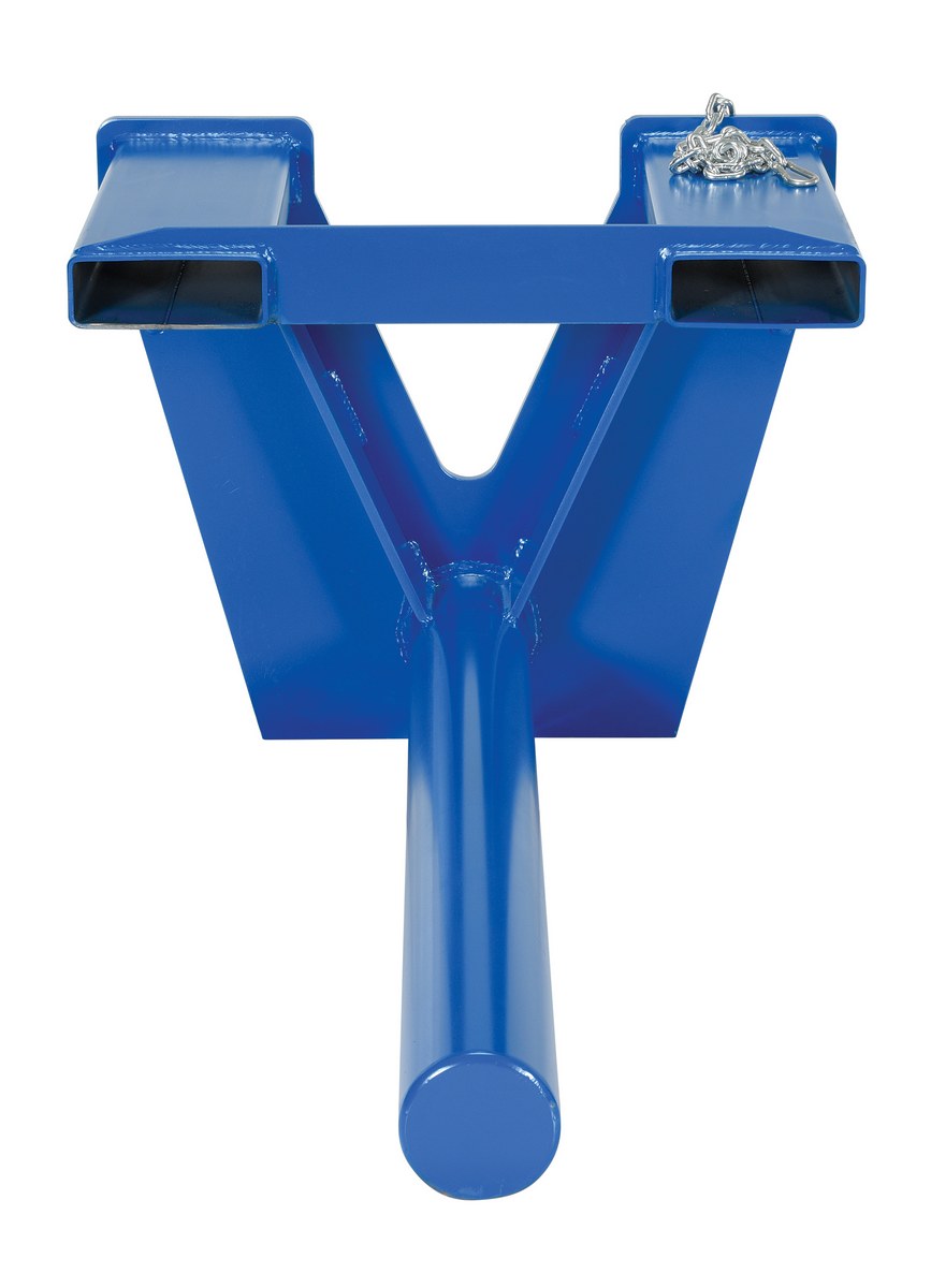 Steel Coil Lifter Fork Mounted Inverted 48 In 5500 Lb Capacity BlueThe coil ram/lifter is used to easily maneuver many types of coiled material. To accommodate multiple core sizes and capacities select different diameter ram poles. With a sturdy steel construction, the carriage mounted unit is class II with a spring loaded lock pin to secure the unit to fork truck carriage.