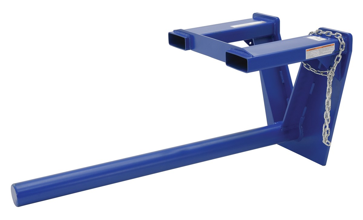 Steel Coil Lifter Fork Mounted Inverted 60 In 3000 Lb Capacity BlueThe coil ram/lifter is used to easily maneuver many types of coiled material. To accommodate multiple core sizes and capacities select different diameter ram poles. With a sturdy steel construction, the carriage mounted unit is class II with a spring loaded lock pin to secure the unit to fork truck carriage.