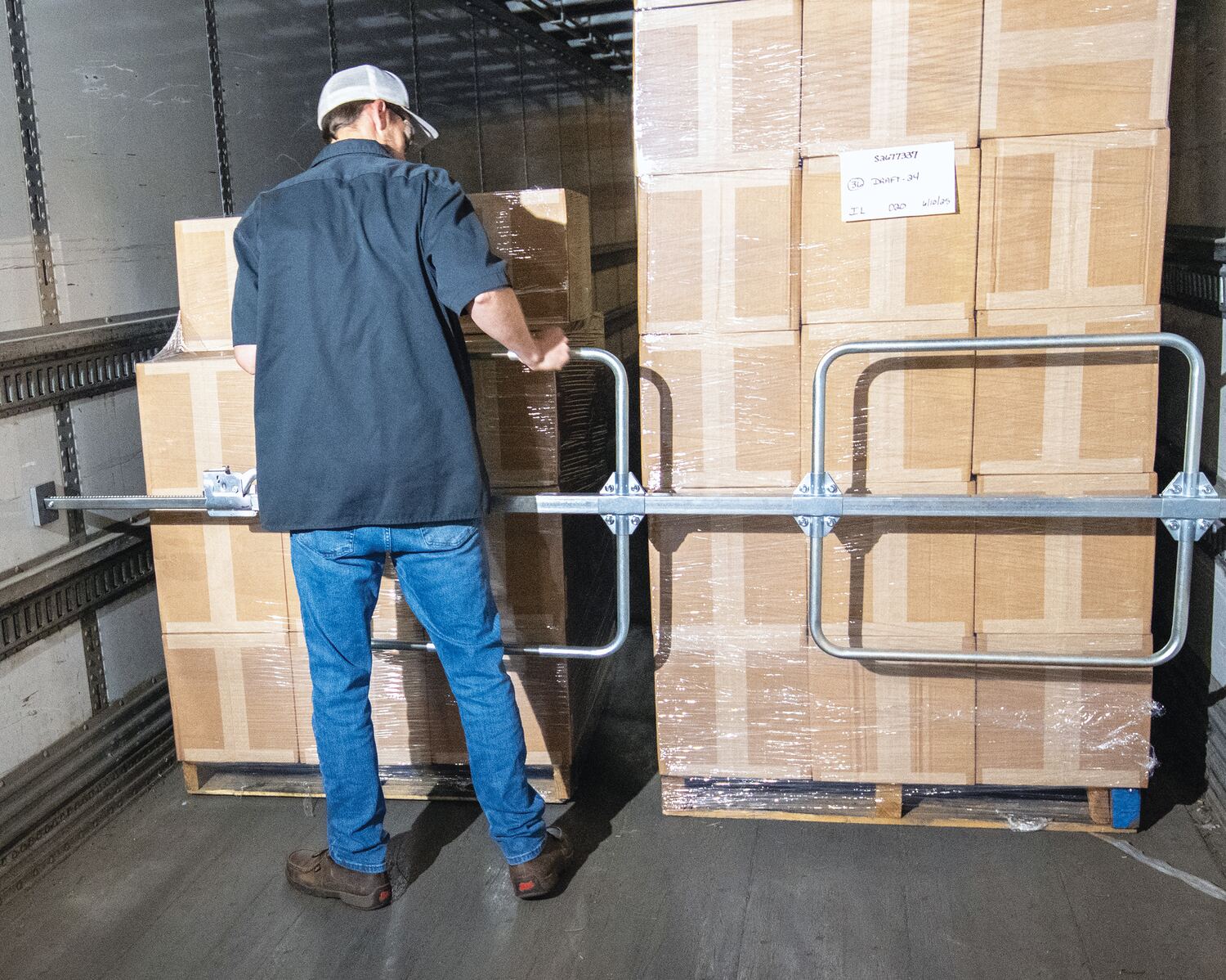 Steel Cargo Bar 1 Piece 119 In. Length x 3-3/4 In. Width x 24-1/2 In. Height With Hoops SilverSometimes trailers can't be packed tight enough to stop items from jostling, which can lead to unnecessary damage and high replacement costs. Here to put an end to those problems even before they start; is a cargo bar with hoops. The hoops provide an upper and lower level of security in addition to the horizontal presence from the cargo bar itself, while the cargo bar is expandable to fit perfectly into the space parameters of the situation. An articulating square steel end plate is rubber padded for gripping action. Assembly is required, but hardware is included!