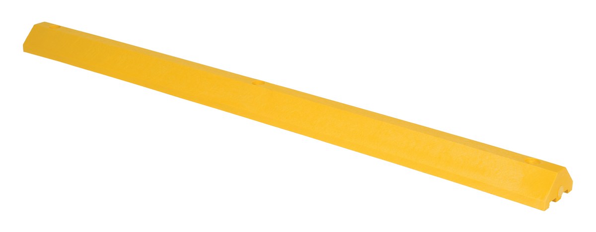 Recycled Plastic Car Stop 72 In. x 6 In. x 3-1/4 In. YellowThe car stops protect people and property from drivers in dangerous areas. Constructed of lightweight recycled plastic. One person installation. Can be moved for seal coating, snow removal, change of location. Resists marring by oil, road salt, sunlight, and chemicals. Resists rotting, termite damage and corrosion. No costly painting or maintenance. Hardware kits sold separately.
