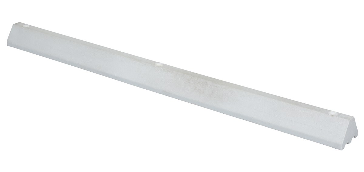 Recycled Plastic Car Stop 72 In. x 6 In. x 4 In. WhiteThe car stops are ideal for parking lots and a variety of parking structures. The unit protects people and property from drivers in hazardous areas. The unit is constructed of a rubberized recycled plastic which decreases the chance of marring by natural sunlight and a variety of chemicals. The unit can be simply removed and transported by just one person. Hardware kits are sold separately.