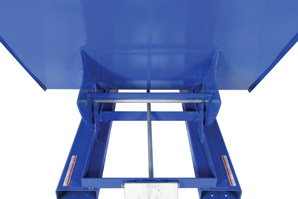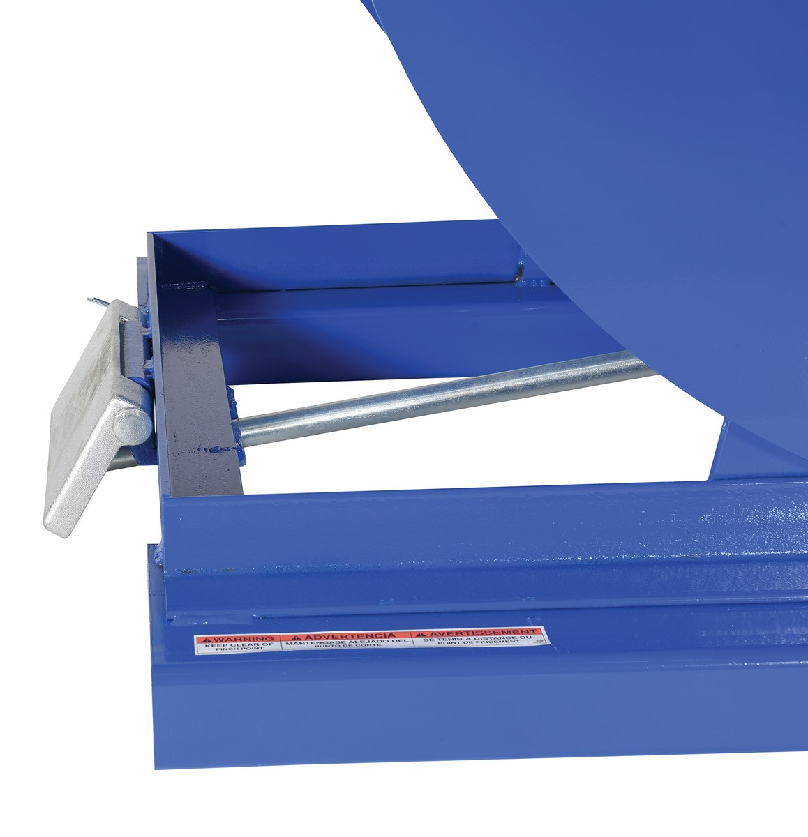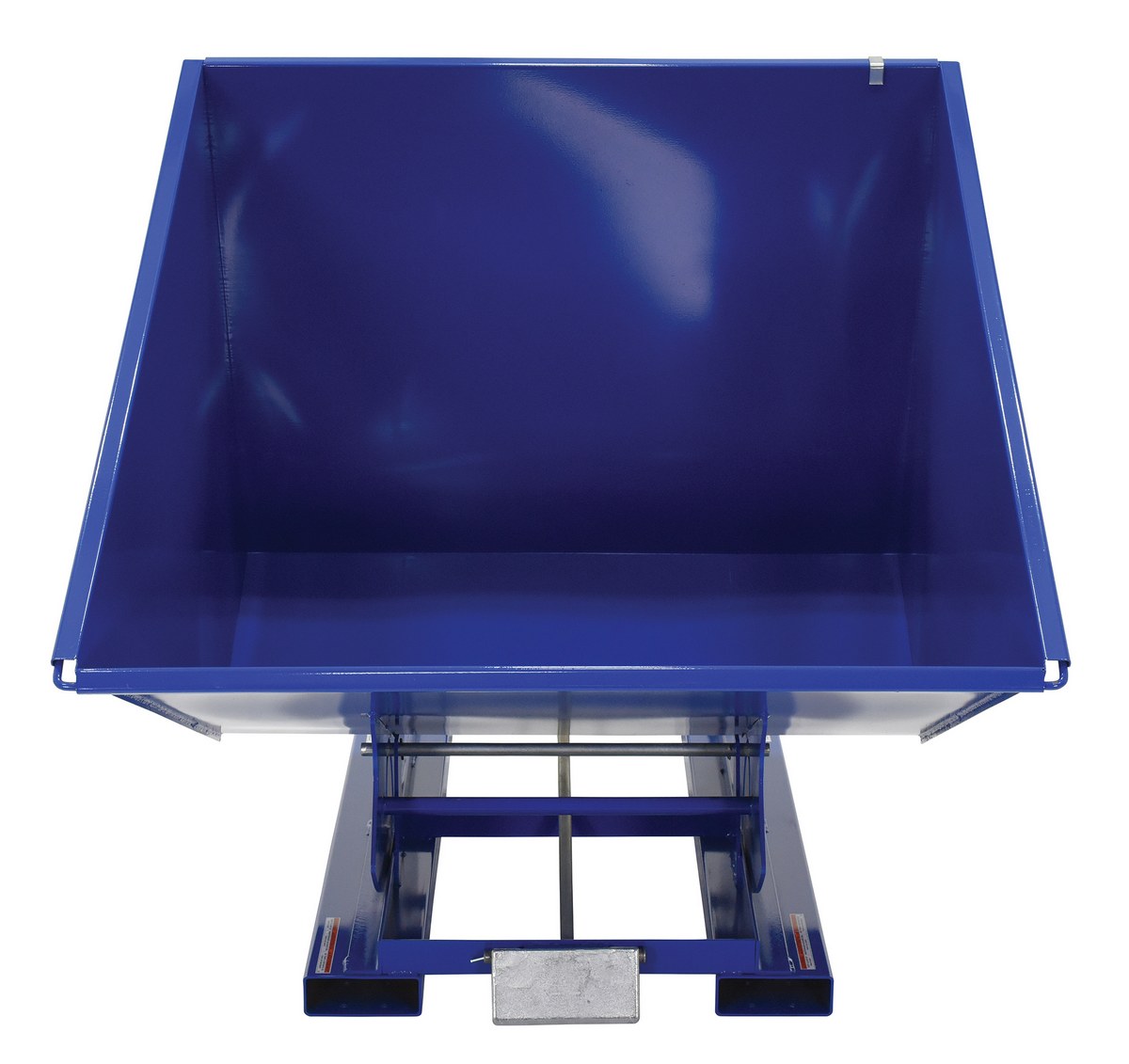 Steel Medium Duty Self Dumping Hopper 2 Cubic Yard 4000 Lb. Capacity BlueThis Medium Duty self-dumping steel Hopper with bumper release automatically dumps when bumper release contacts the front of the dumpster. Hopper returns to an upright and locked position automatically after it dumps. Also includes a cable that may be operated from the seat of the fork truck to manually dump the hopper. The included safety restraint should be properly secured to a fork truck before dumping. (Length dimension is measured at top of chute.) Self-dumping hoppers facilitate compliance with OSHA general industry rule 29 CFR 1910.178(m)(5)(iii) by allowing lift truck operators to remain at the controls of their truck throughout the dumping process.