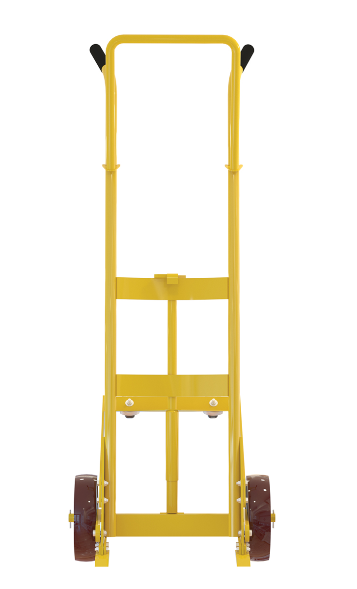 Steel Drum Truck with 2 Rigid/2 Swivel Poly Wheels 1000 Lb. Capacity YellowDesigned for moving 55 gallon steel drums. Features a spring mechanism, which allows for easier tilting of fully-loaded drums. Four-wheel design for easier drum transportation when tilted. Top loop handle allows for easier control when moving. Drum is secured to truck with an adjustable height drum hook bar. Removable drum hook bar includes built-in bung nut wrenches. Capacity is 1,000 pounds. Steel construction with powder coat finish.