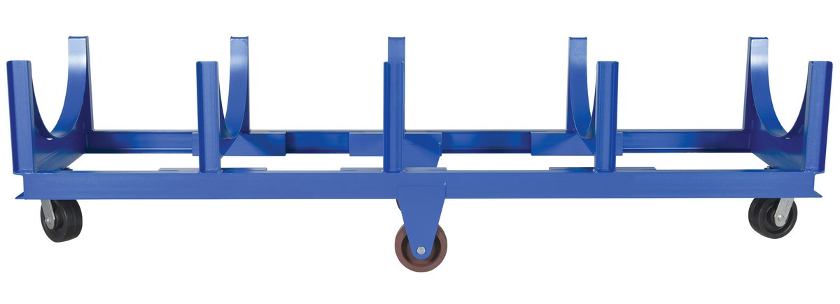 Steel Heavy Duty Cradle 123-1/16 In. x 31-1/2 In. x 32-3/8 In. 10000 Lb. Capacity BlueMove and store pipe, channel, bar stock, barrels, or drums with this Heavy Duty cradle cart. A large open design that makes loading and unloading by fork trucks and slings easy. All welded construction. Wheels are mounted in a diamond pattern to allow the truck to tilt when going over thresholds and turn about on its own center. Lightweight Aluminum cradle cart fits all small to medium loads. Powder coat finish standard on steel cart.