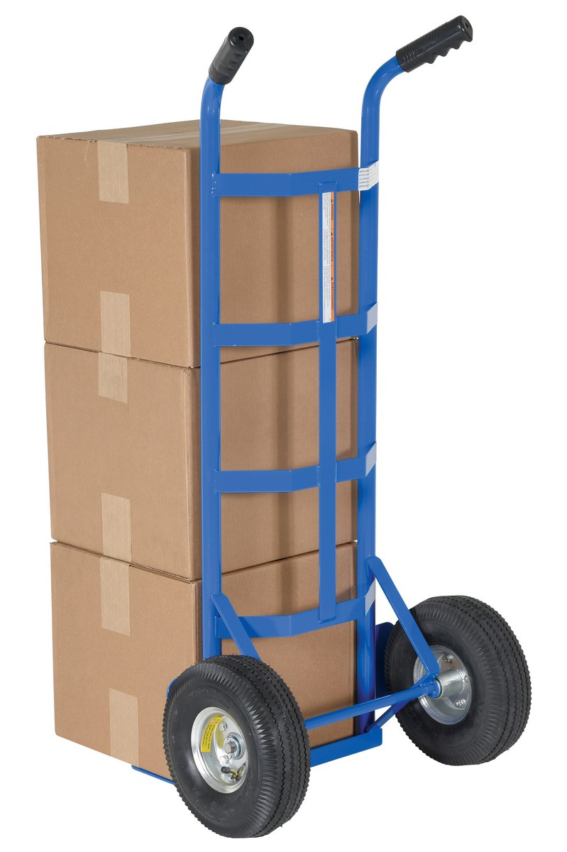 Maximize control for different loads with our dual handle Hand Truck. This hand truck can transport boxes or crates wherever they are needed. Transport loads smoothly and evenly over rough or uneven floors.