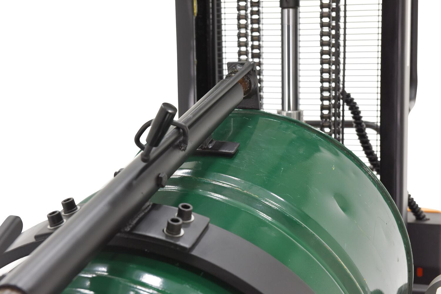 This portable Drum Lifter/rotator/transporter features a DC powered rotation mechanism which provides rotation of the drum. The DC powered mechanism raises and lowers the drum (on-board charger standard). For use with steel and fiber drums.