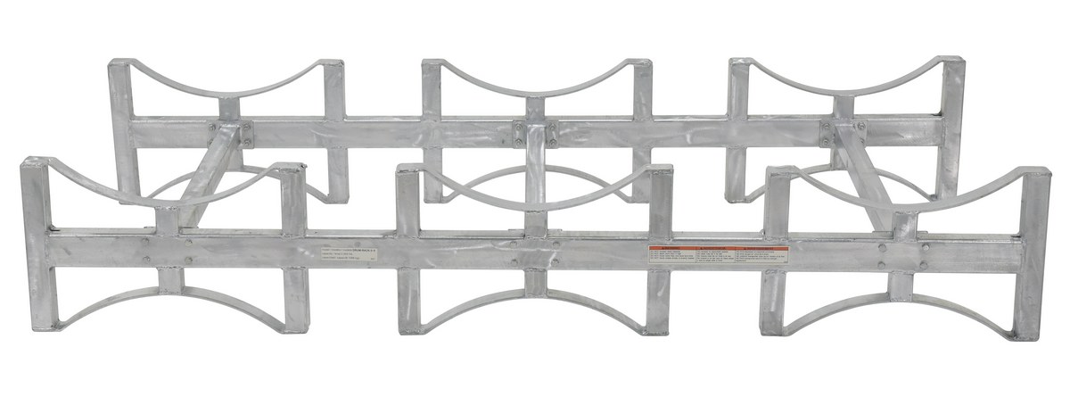 Galvanized Steel Stackable Drum Rack 3 Drum 55 Gallon 2400 Lb. Capacity GrayThis steel drum rack has four-way fork truck access. Not recommended for stacking more than four (4) racks high. All steel construction with formed steel cradles. Bolt together assembly with hardware included.