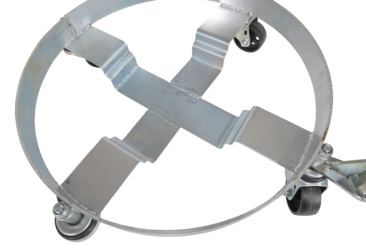 This multi-purpose drum dolly has a high polished bright zinc finish for corrosion resistance. Dolly comes with a handle that lets the user steer and move the unit to the desired location with ease. Casters allows the unit to roll smoothly across a variety of surfaces.