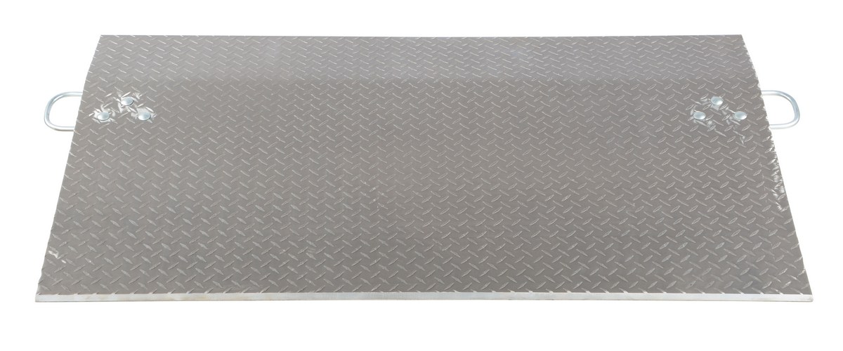 Aluminum Economizer Dock Plate Usable 60 In. x 36 In. 3/8 In. Plate Thickness 4100 Lb. CapacityThe aluminum economizer dock plate is an economical way to speed up truck loading and unloading. The unit spans the opening between dock and trailer to allow pallet or hand trucks along with traffic to safely move in and out of the trailer. The dock plate is constructed of high strength, non-skid aluminum alloy tread plate. The lightweight design with bolt on zinc plated legs and handles on each side makes portability easy. Locking legs for OSHA compliance. Not for use with fork trucks.