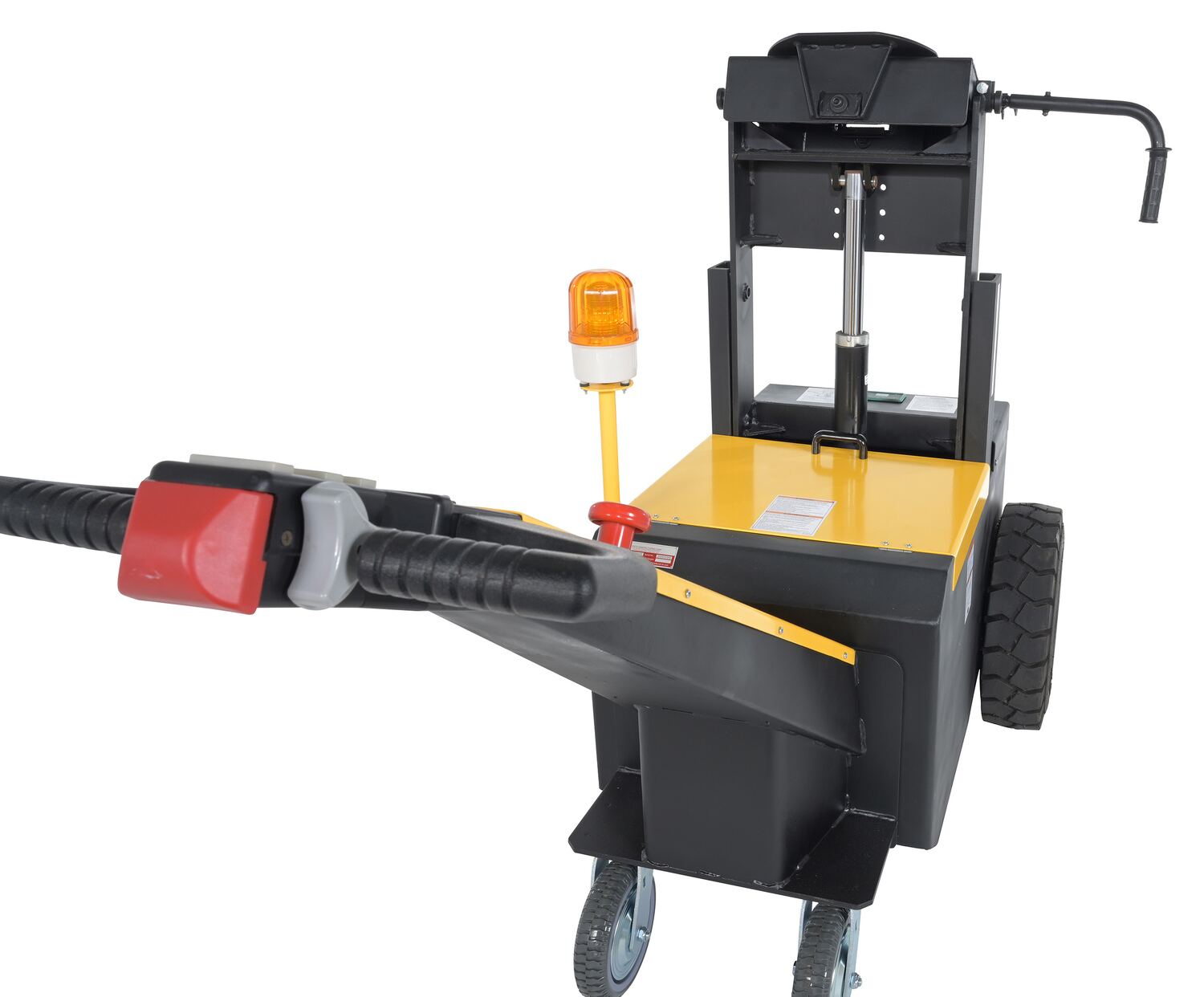 Steel Heavy Duty Electric Powered Tugger With Fifth Wheel Attachment 10,000 Lb. Pulling Capacity YellowAn electric powered heavy duty tugger is suitable for use in airports, hospitals. They can also be used in a variety of applications like pulling industrial carts, hoppers, and trailers; all without the needless extreme stress or strain on your body. Ergonomic handle features easy to operate throttle with forward/reverse speeds and horn. Also included is an electromagnetic disc brake with automatic dead-man feature that activates when the user releases the handle. With the addition of a fifth wheel component the tugger can now maneuver a variety of industrial and recreational equipment.