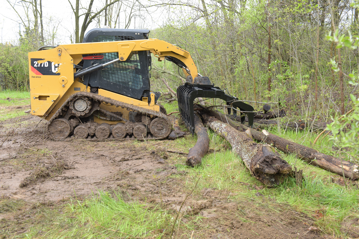 Steel Skid Steer Grab Bucket 84 In. Overall Width BlackA grapple bucket is a great tool for landscaping and other residential operations. With a simple attachment, the bucket can be in place and ready to use almost immediately. Constructed of steel, the grapple bucket shows long lasting strength throughout use. With the help of the leading edge and two over the top arms, this unit is perfectly designed for clearing brush and overgrown shrubbery. The open grate style bottom allows debris and other loose material to fall through, leaving only the intended objects in the bucket.