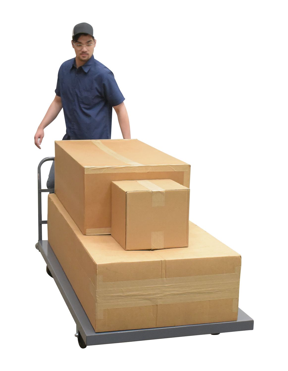 Steel Smooth Deck Platform Truck 36 In. x 72 In. 2000 Lb. Capacity GrayA steel platform truck is the perfect addition to any warehouse or shipping center. The steel platform design provides the user with a better sense of security. With a smooth surface, the amount of abrasion and scuffs during movement is limited. The steel handle allows the user to maintain an ergonomic posture while transferring goods. Mold on rubber casters roll smoothly. Powder coated finish provides added toughness.