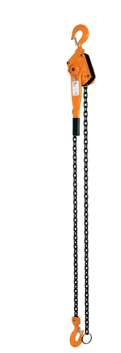 Steel Economy Lever Hoist 10 Ft. Chain Length 6000 Lb. Capacity OrangeThe economy lever hoist is ideal for lifting and pulling applications. It features a completely enclosed Weston-type automatic brake system for precise load positioning. This hoist is constructed from cold-formed stamped steel, which confers great strength, impact resistance and long product life. Single-hand "free chaining" is simple and convenient allowing smooth, trouble-free operation in the vertical or horizontal position. Both the swivel hooks include deformation indicators. Every chain hoist is issued with an individual test certificate.