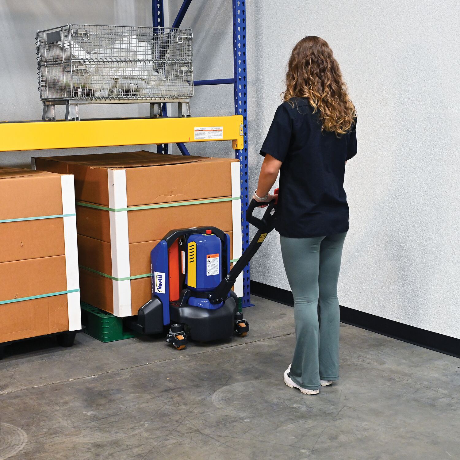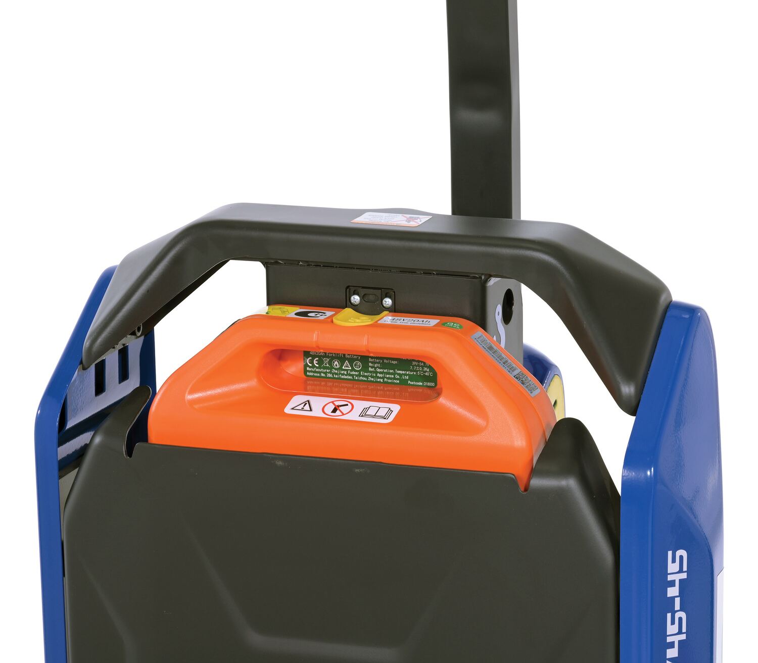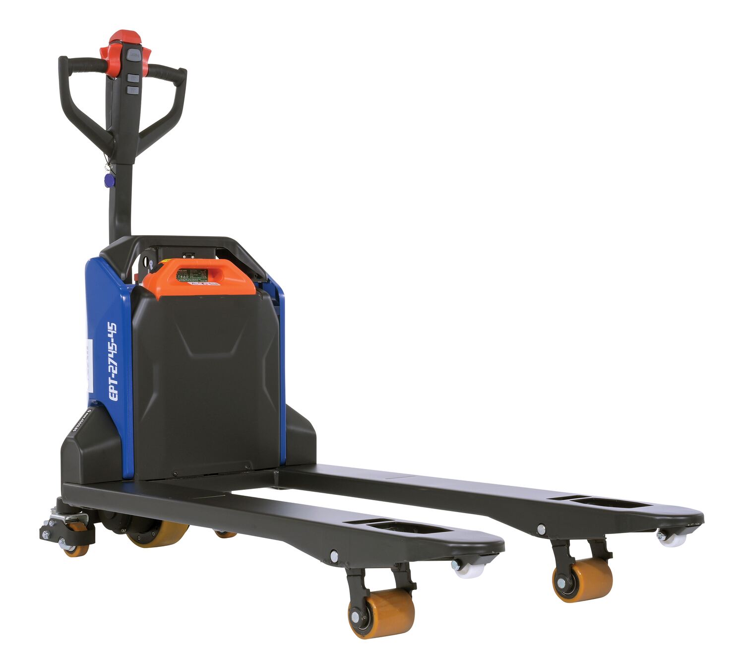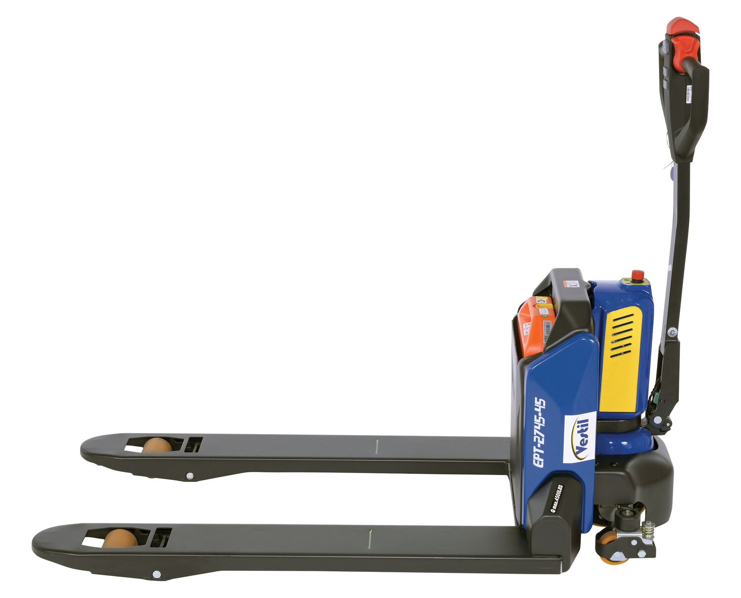 Steel Electric Pallet Truck 27 In x 45 In 4,500 Lb. Capacity Black/BlueAn electric pallet truck is the perfect upgrade from the standard manual design. This functional approach minimizes manual labor and maximizes efficiency when moving products and goods. Speed adjustments as well as raising/lowering forks can be modified without the users' hands leaving the functional handle. Unit is powered by a lithium ion battery for continuous consistent use. Forks are powder coated for a baked in added toughness. Horn is also included.