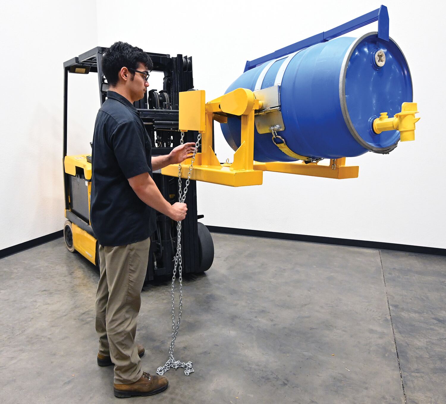 Steel Fiber & Plastic Drum Adapter Carrier/Rotator For 30 Gallon and 55 Gallon Drums BlueThis fiber drum adapter is designed to hold and support fiber and plastic drums. Comes complete with both an adjusting arm and a high strength nylon strap so thirty (30) gallon and fifty-five (55) gallon drums can be used with listed stackers and carrier/rotators.