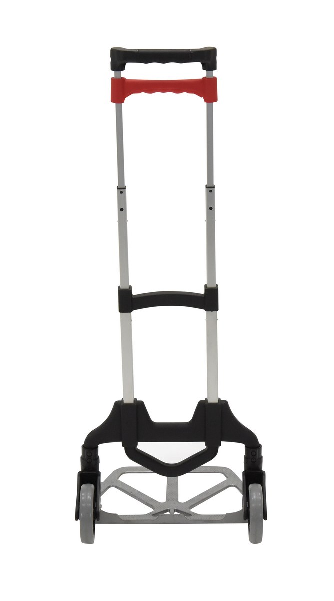 Aluminum Foldaway Hand Truck 150 Lb. Capacity SilverDesigned for everyday, all purpose use. The handle and wheels fold up quickly and easily allowing you to store it in tight spaces such as trunks of cars, under tables, or in closets.