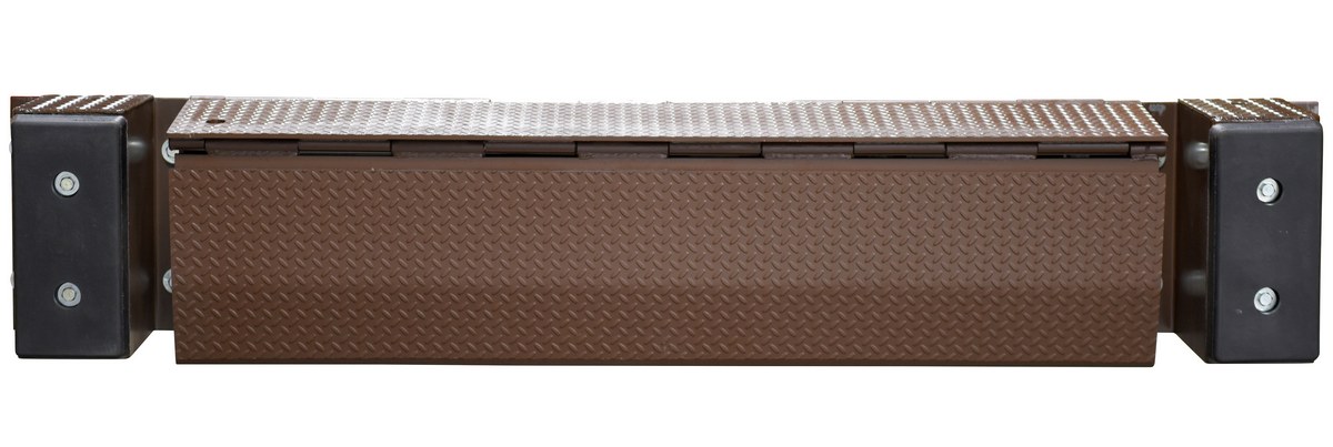 Steel Mechanical Edge-O-Dock Leveler 72 In. Ramp Width 25,000 Lb. Capacity BrownThe Edge-O-Dock leveler permanently attaches to face of dock. It is recommended for docks to be at least forty-eight (48) inches high. When the trailer departs, the lip drops automatically behind the face of the bumpers. It comes complete with bumpers and installation instructions. Standard ramping is twenty-nine (29) inches. A steel dock edge, or approach ramp is required for proper installation. The mechanical Edge-O-Dock is operated by placing the actuation handle into the pocket of the inner lip and pulling down toward the floor. The operator then pushes the handle forward until the lip rests on the truck bed. As the trailer departs, the lip retracts behind the bumper face automatically.