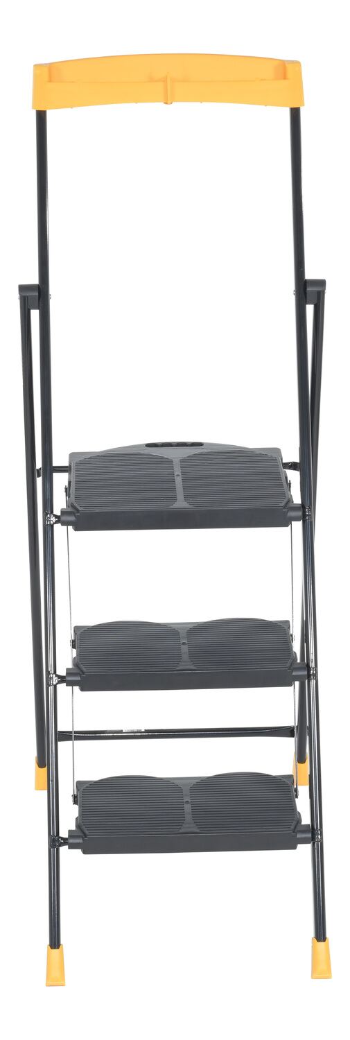 Steel Pro Step Stool 3 Step 250 Lb. Capacity BlackThis durable, multipurpose ladder is perfect for homes, offices, schools, and the industrial warehouse. The compact design can quickly be turned from a standard step stool into a flat profile, making it perfect for storage and on the go. Never to be overlooked, with safety always being the number one priority, the anti-slip platforms help provide a secure climb and descent from the step stool.