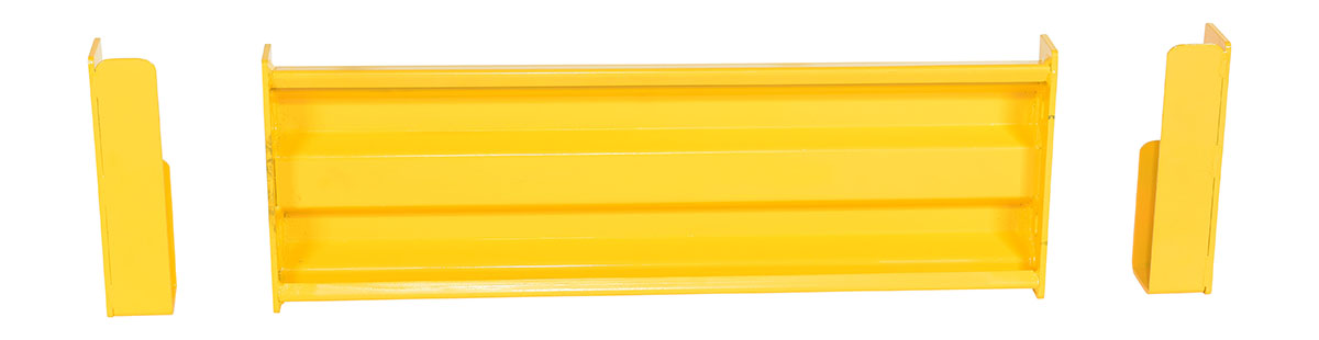 Steel 2 Ribbed Drop In Style Guard Rail 30 In Length YellowProtecting equipment, inventory, and most importantly individuals from damage or injury is always a concern. But, with a structurally strong steel guard rail those worries can be eased. This rail is double ribbed for impact resistance both indoors and out. With the drop-in style rail design, accessibility is simple and rails can be positioned quickly. To put in place simply slide the rail sections into the post saddles. Powder coated finish for built in added toughness. Additional posts are available and sold separately. If adding a rail to an existing rail and post section, only a single post is needed.