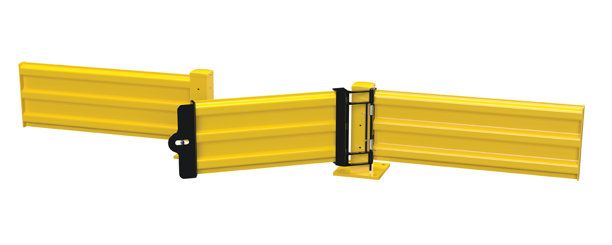 Steel Hinged Guard Rail 29.875 In Length 3 Ribbed Gate YellowSometimes personnel need access to what a guardrail is protecting. A swinging guard rail gate is the perfect solution. When closed the gate acts just like the rest of the guard rail, but it has a sleek connection and can swing freely. Simple opening and closing for quick entry and exit. Steel construction maintains strength during the wear and tear of daily use. Powder-coated finish for durability and strength. Hardware is included. Additional posts are available and sold separately. If adding a rail to an existing rail and post section, only a single post is needed.