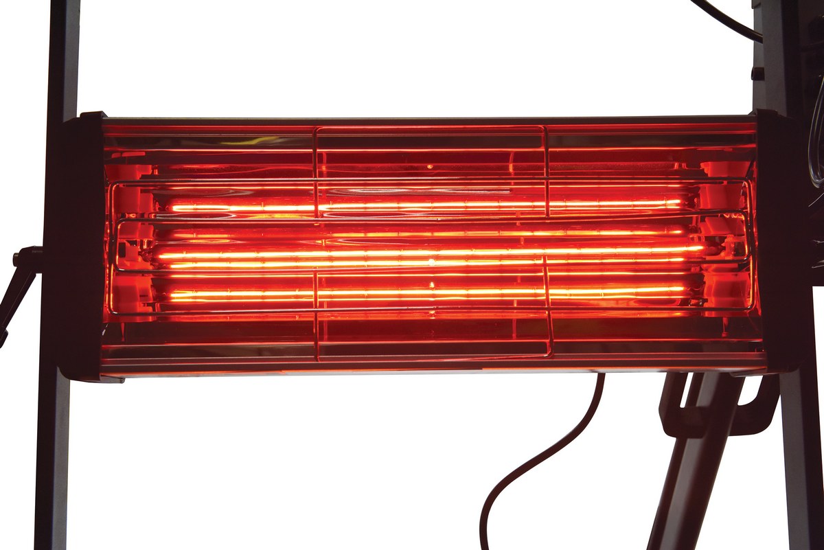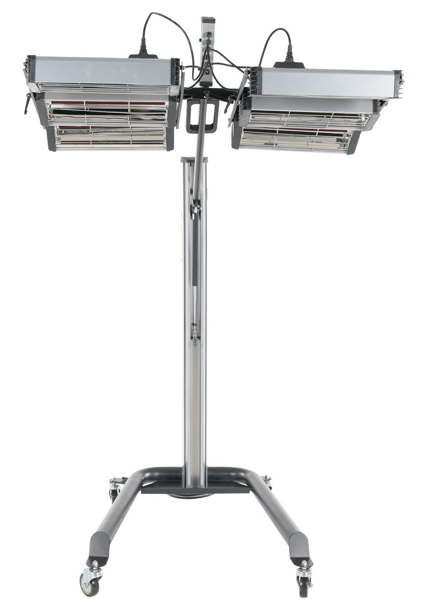 An infrared heater provides beneficial warmth to a variety of industrial areas. A simple to use control panel allows the function and heat settings to be utilized in the best possible way for maximum efficiency. An adjustable heater arm gives the user the ability to maneuver the heating elements into a position that best fits the type of surface that is being heated. Unit includes casters to easily maneuver the unit to and around the work area. A robust structural construction endures work place conditions that are continually changing.