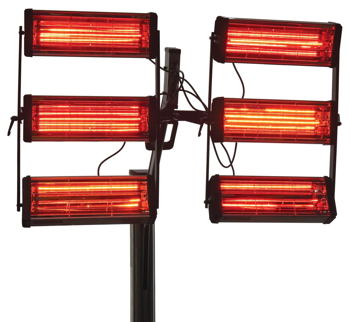 Steel Infrared Heater 6 Panel 230 Volt 1 Phase Black/SilverAn infrared heater provides beneficial warmth to a variety of industrial areas. A simple to use control panel allows the function and heat settings to be utilized in the best possible way for maximum efficiency. An adjustable heater arm gives the user the ability to maneuver the heating elements into a position that best fits the type of surface that is being heated. Unit includes casters to easily maneuver the unit to and around the work area. A robust structural construction endures work place conditions that are continually changing.