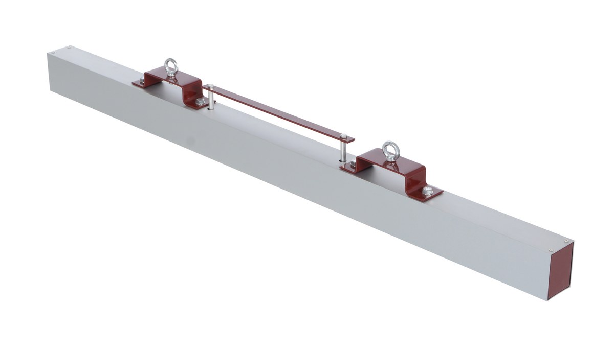 The hanging magnetic sweeper with fork lift hangers is ideal for cleaning industrial settings, parking lots, and loading areas. The unit can be suspended from a fork lift for smooth and efficient gathering of material, both large and small. The design is durable, yet lightweight, for easy maneuverability and portability from work area to work area. A release lever is located in the sweeper for simple, safe discarding of fragments.