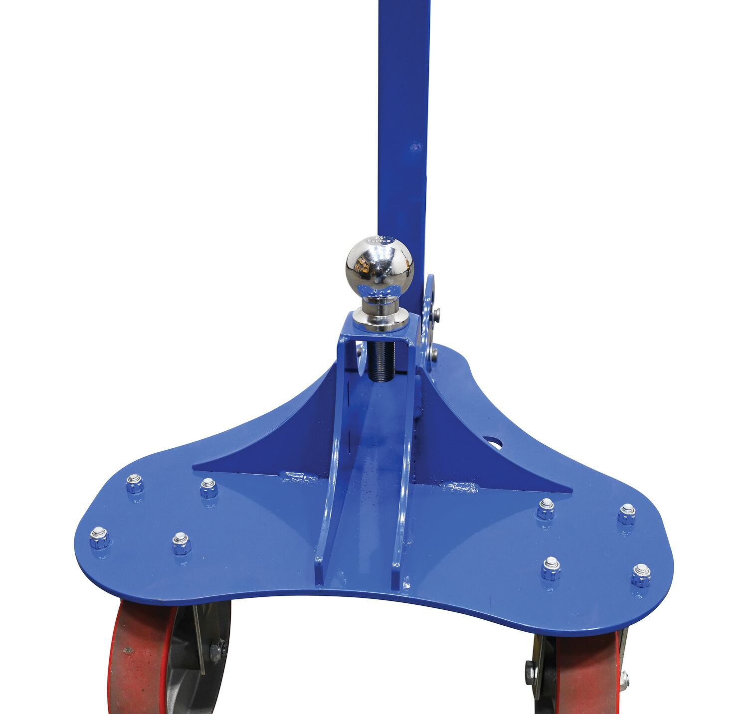 Steel Hitch Mover 3 Wheel with 1-7/8 In. Ball Diameter 2000 Lb Capacity BlueA hitch mover is an excellent addition to the industrial workplace or the at-home shop. A unique open design enables a simple attachment to the ball hitch. The extended handle length minimizes slouching and bending and promotes a better posture for when manually moving a hitched trailer. With a steel construction, this trailer dolly is strong and durable throughout daily use. Blue powder coat finish for baked in added toughness. Hardware is included.