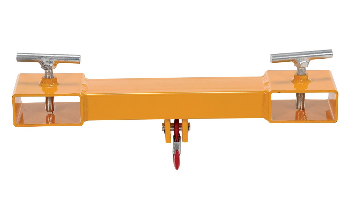 The hook attachment is designed of a strong construction for lifting awkward heavy products. A simple installation allows the user to obtain immediate use of the hook and start maneuvering products. A bright yellow finish promotes safety and visibility while transferring units.