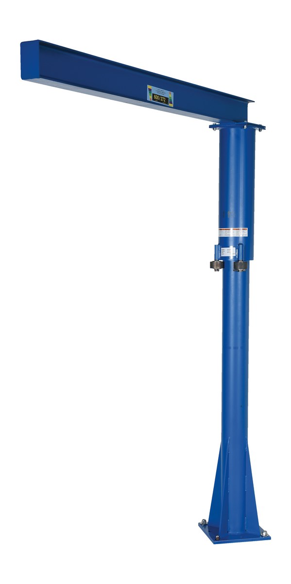 Steel Floor Mounted Jib 80 In. I-Beam 600 Lb. Capacity BlueThis floor mounted jib adapts well to a variety of applications. With the unique design, the jib is functional in any direction for complete customization of the work station. Solid steel construction will assist workers in lifting awkward material. Hoists & Trollies can be ordered separately.