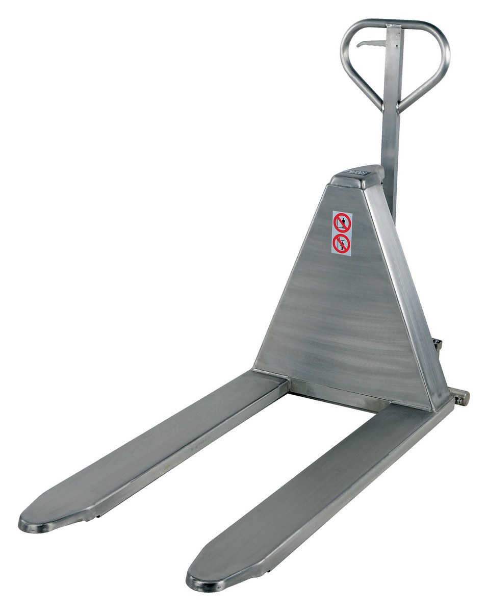 Stainless Steel Hand Pump Tote Lift 60 In. x 27 In. x 48 In. 2000 Lb. CapacityThe tote lifter is designed to lift open bottom skids, boxes, and baskets. This lifter has the hand pump to raise or lower. The hand pump design features an ergonomic pump handle with two (2) lifting speeds to accommodate for light or heavy loads. The side stabilizers lock lift in place when load is raised over a certain height.