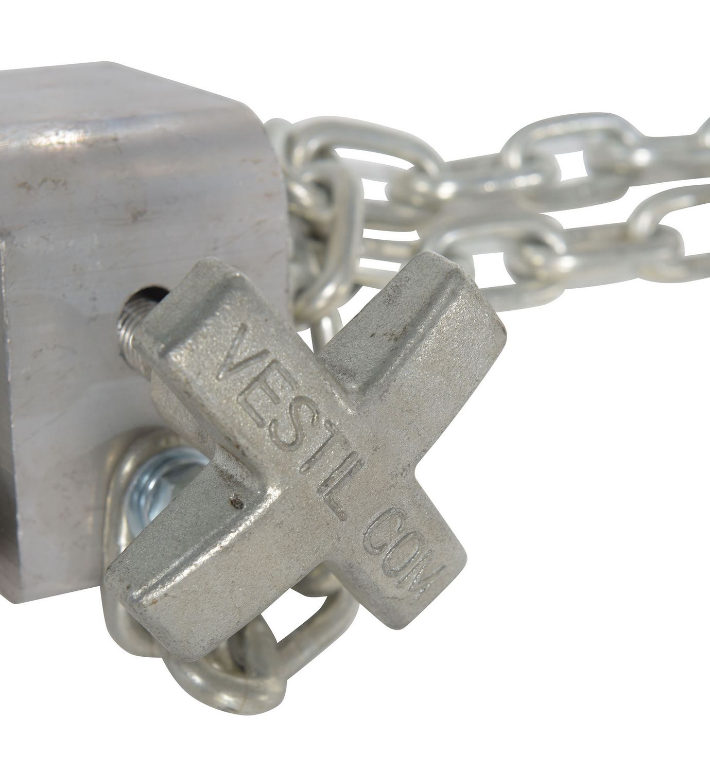 Steel Curb Lifting Chains 42 In. Length For Aluminum Dock Boards SilverA lifting chain minimizes the manual labor associated with maneuvering heavy oversized dock boards. The chains provide a central point to be securely grasped by a lifting device, such as a fork lift. A bracket with a knob for quick hand tightening is included and can be attached to the side of a dock board to assist with the chain tightening.