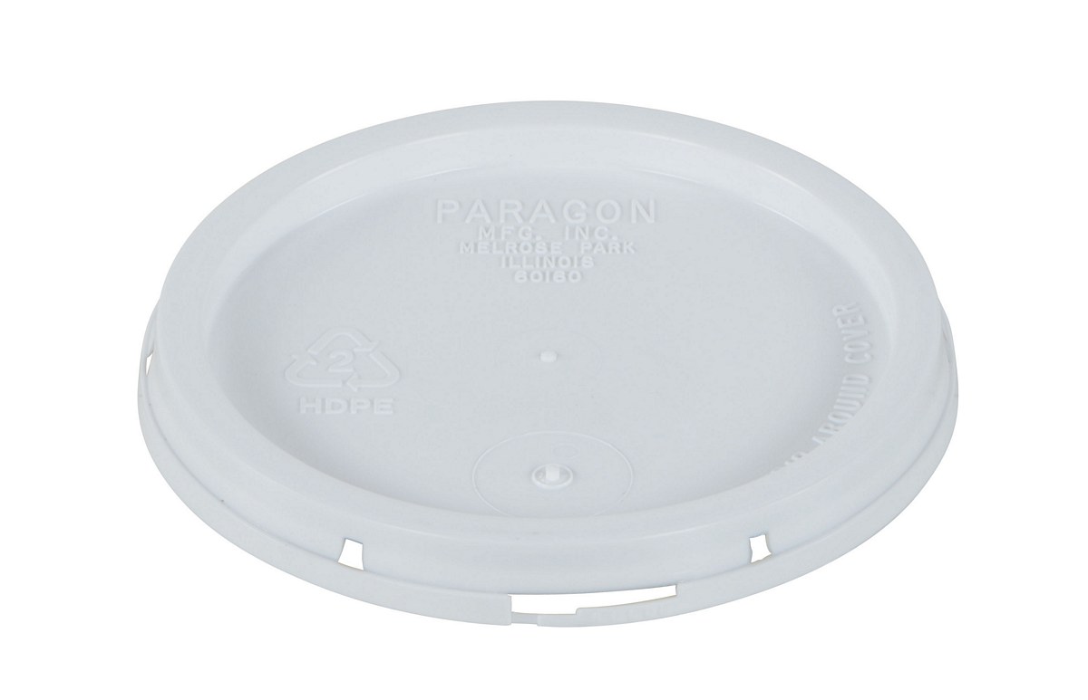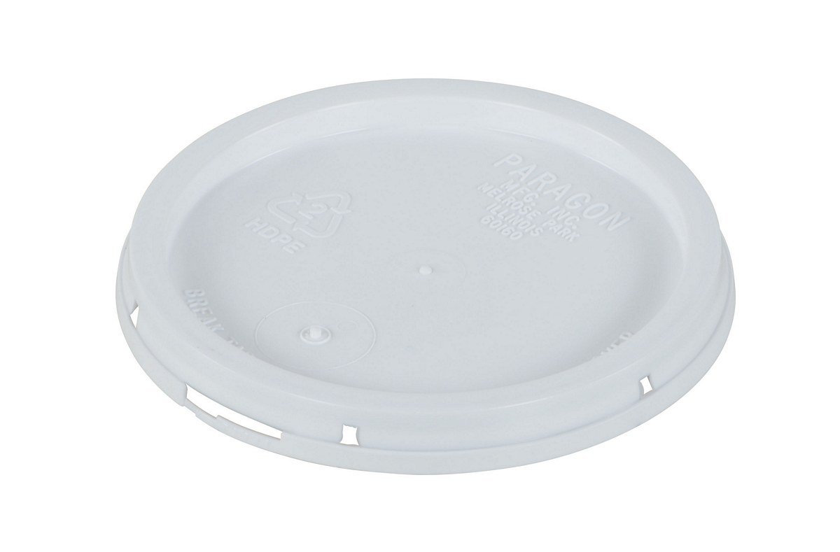 Plastic lid for use with plastic pail. This plastic lid is constructed of one-hundred percent (100%) prime virgin high density polyethylene (HDPE) and comply with FDA regulations, with a tear tab. Suitable for shipping according to D.O.T. Standards.