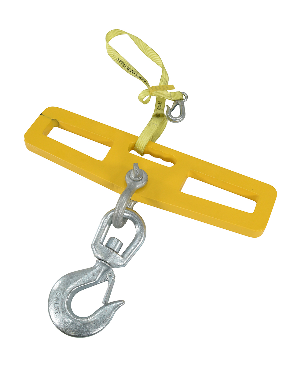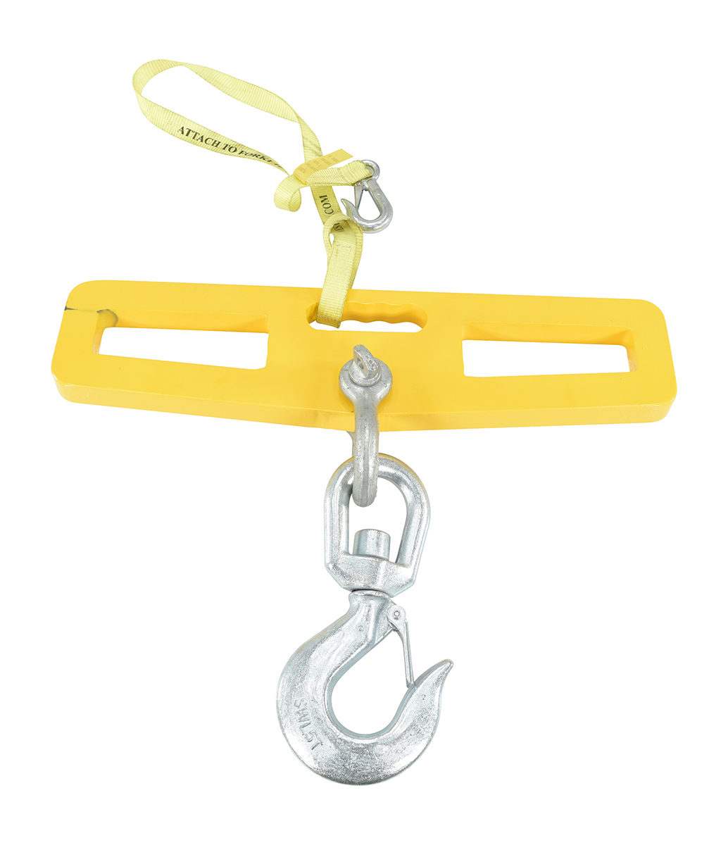 Steel Fork Truck Hook Plate Swivel with Latch 10,000 Lb. Capacity YellowA lift-master hook plate is wonderful asset for securing and lifting heavy loads. With a strong steel construction the lift is easily maneuvered by utilizing the two fork slots. A centrally located hook and latch are also included for simple securing of the product being lifted. A sleek, compact design takes up minimal room when not in use. A centered built in handle is great for lifting and moving by hand.