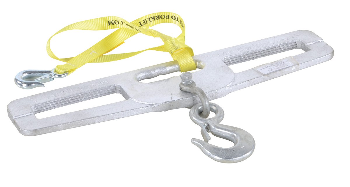 Steel Fork Truck Hook Plate Rigid 4,000 Lb. Capacity SilverThe hook plate enables any fork truck to safely lift a load using chains, cables, or slings. Features slanted fork openings to prevent the hook plate from being used upside down. A hook with anchor shackle is included.