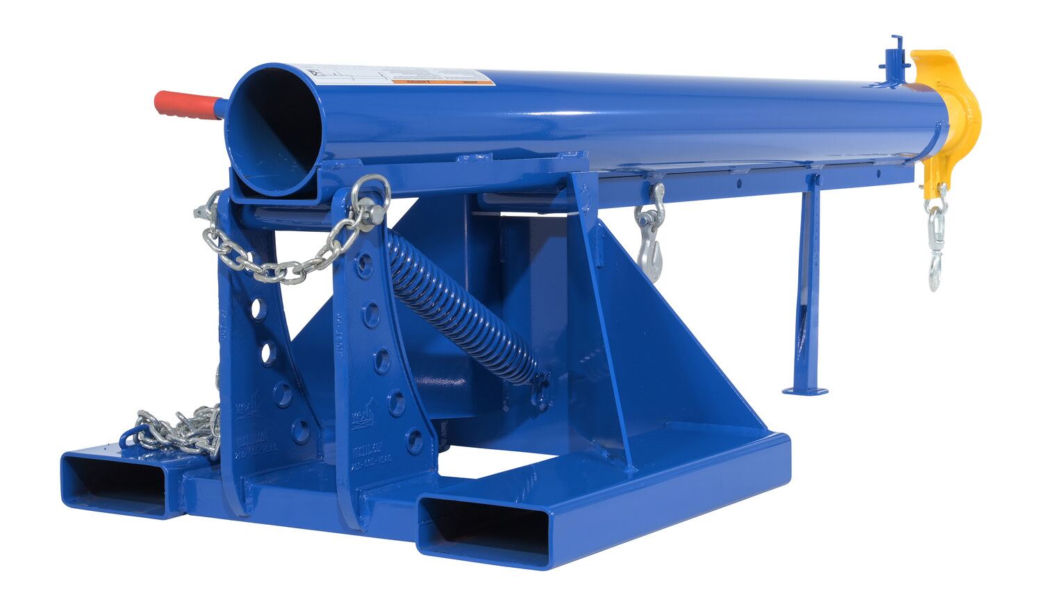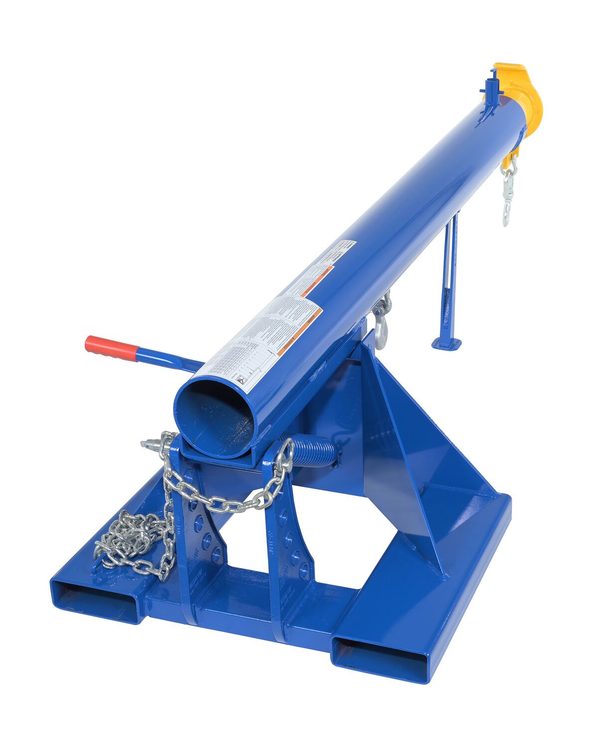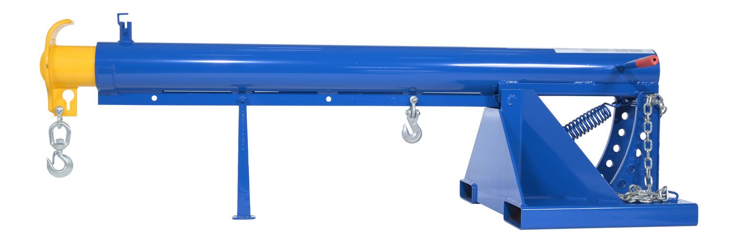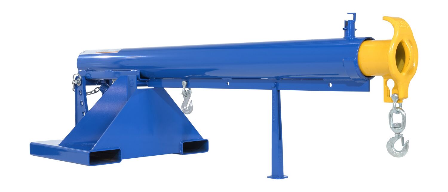 Steel Orbit Telescoping Lift Boom 24 In. Fork Pocket Center 4,000 Lb. Capacity BlueUnique performance, convenience, and safety features are built into every lift master boom. Fabricated from structural steel with welding to meet AWS creates a rugged and durable boom that will provide long term service. This unit features a locking detest. A safety restraint secures the boom to the fork truck for safe operation. Includes two (2) lifting hooks.