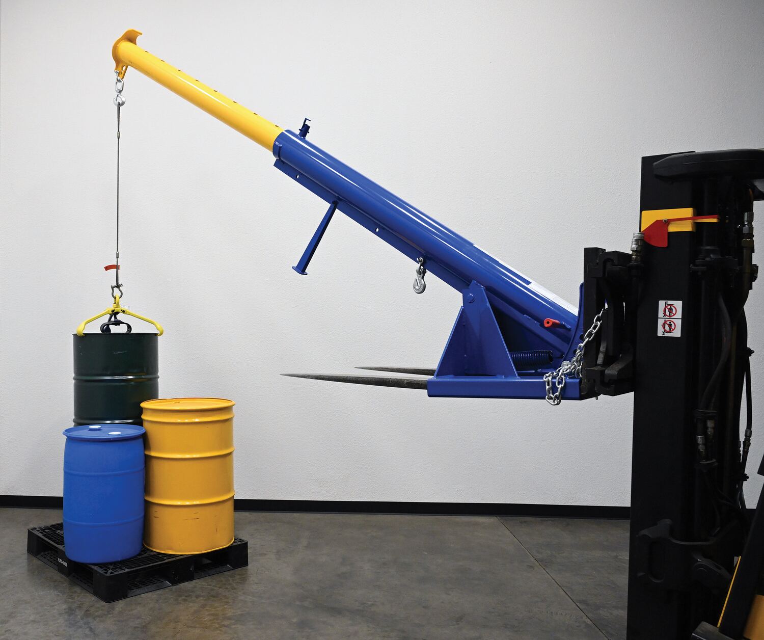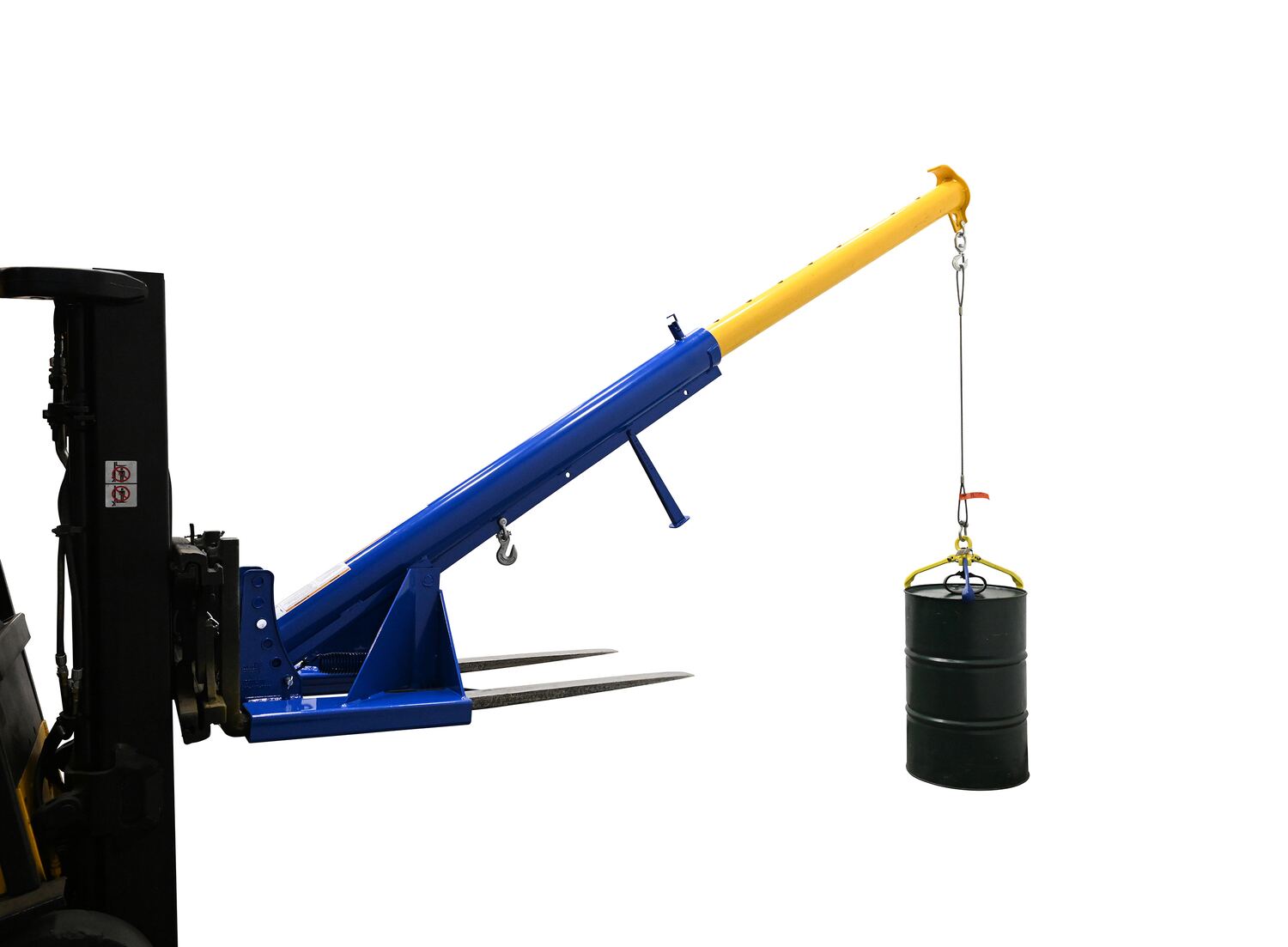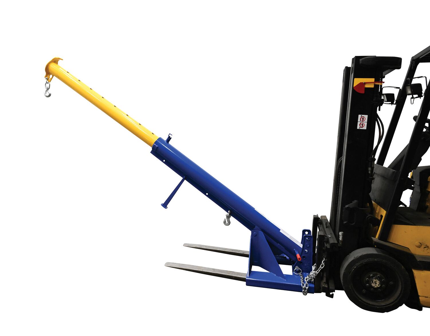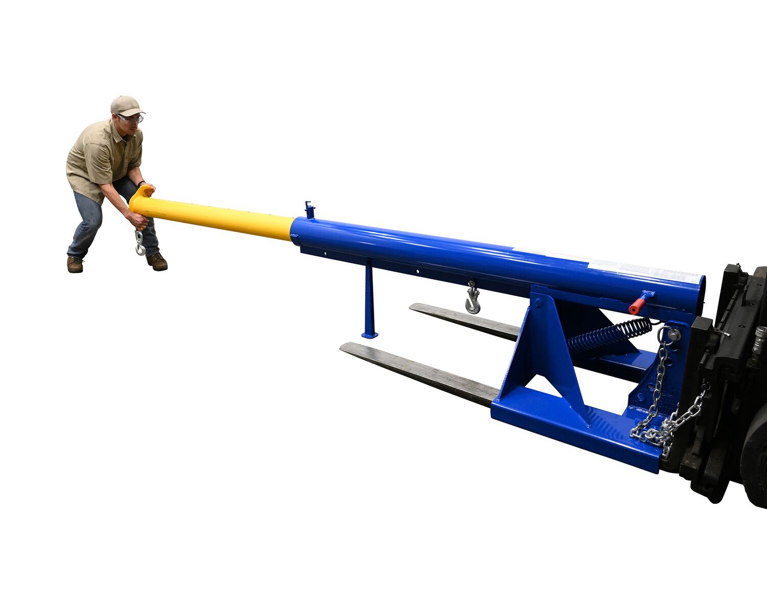 Steel Orbit Telescoping Lift Boom 24 In. Fork Pocket Center 4,000 Lb. Capacity BlueUnique performance, convenience, and safety features are built into every lift master boom. Fabricated from structural steel with welding to meet AWS creates a rugged and durable boom that will provide long term service. This unit features a locking detest. A safety restraint secures the boom to the fork truck for safe operation. Includes two (2) lifting hooks.
