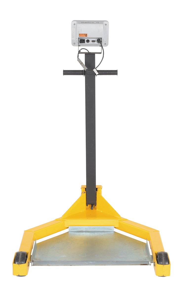 Why bother taking the time to weigh drums at a designated location when you can do it on the go. The low profile drum scale allows the user to weigh the drums while they are being transported. Simply maneuver the drum onto the platform and a read-out of the weight will appear on the screen located near the handle of the dolly. Powder coated black and yellow for increased toughness during daily use. Poly casters are included for simple and a smooth rolling across a variety of surfaces. When not in use, the handle folds down onto the loading platform for a simple storage.
