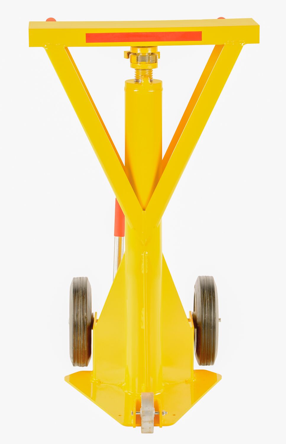Steel Beam Trailer Stabilizing Ratchet Jack 26-11/16 In. x 23-3/4 In. x 40 In. 100,000 Lb. Static Capacity YellowTrailer stabilizing jacks are used to prevent up-ending of semi-trailers when they are not connected to a tractor during loading and unloading operations. Throughout the loading and unloading process it is always recommended to use two jacks, one on each side of the front of the trailer. The trailer must be situated on a flat, stable and improved (preferably concrete) surface, while the jack sits perpendicular to the underside of the trailer. Every jack is built of a high strength steel construction with a flush-type Zerk fitting for lubricating ACME screw. A yellow powder coat finish is included. **The color of handles included with models may vary between red and black**.