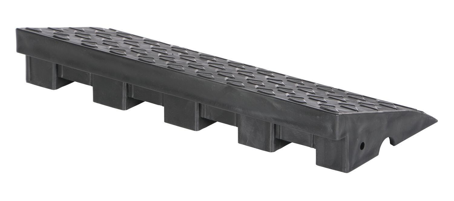 Plastic Multi Purpose Ramp 10-5/8 In. x 23-13/16 In. x 3-7/8 In. 5000 Lb. Capacity BlackThe multi-purpose ramp is a high impact ramp that is perfect for a variety of work environments; postal routes, schools, hospitals, warehouses and delivery routes. This ramp makes it simple to move loads onto a curb or over hoses and cables. The textured non-skid surface allows for sure footing on the incline and decline. The lightweight and completely portable unit handles hand trucks and other wheeled equipment with ease.