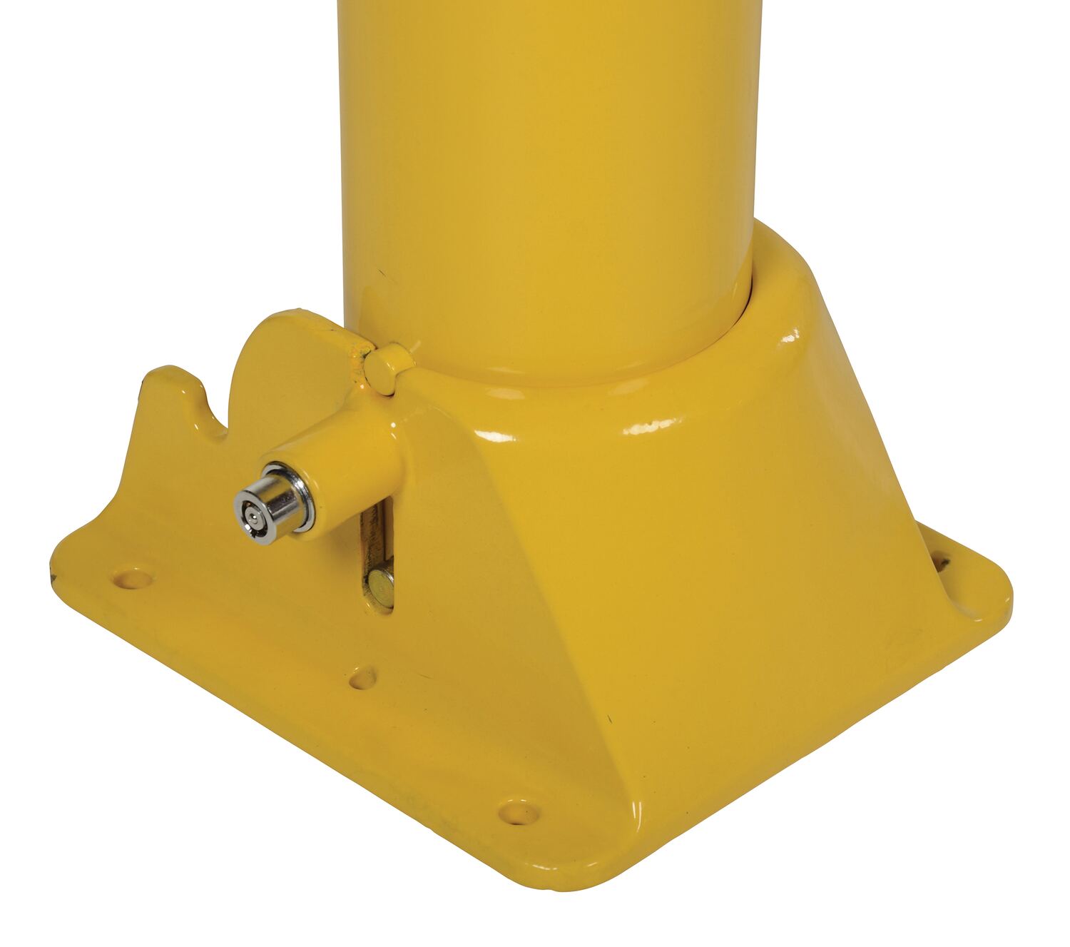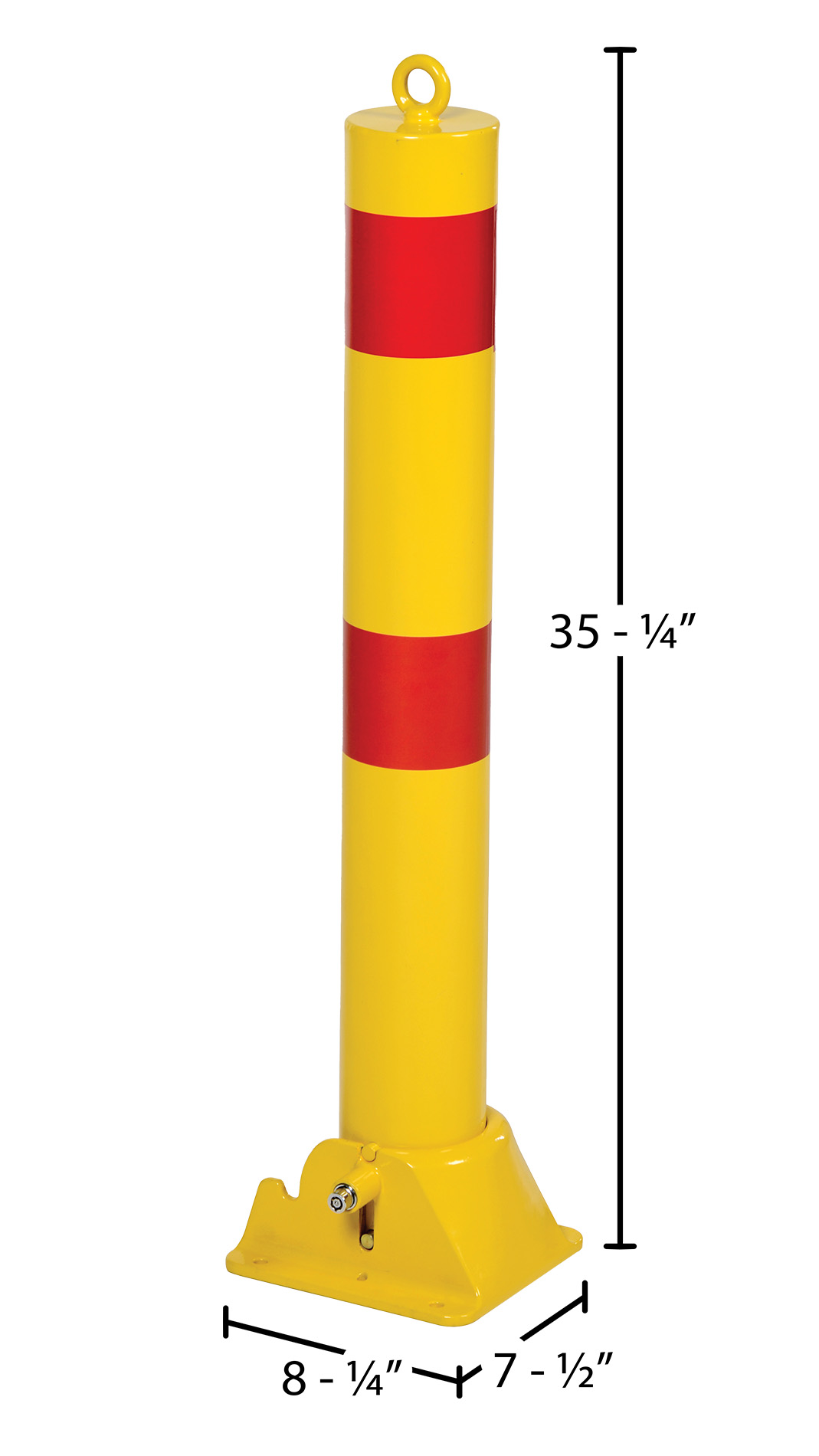 Steel Fold Down Bollard 8-1/4 In. x 7-1/2 In. x 35-1/2 In. YellowThe fold-down bollards are ideal for industrial and distribution facilities. The heavy duty, stainless steel construction is durable and long lasting through the harshest of environments. Secures in open position via internal lock, two keys included, along with mounting hardware.